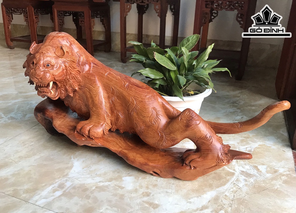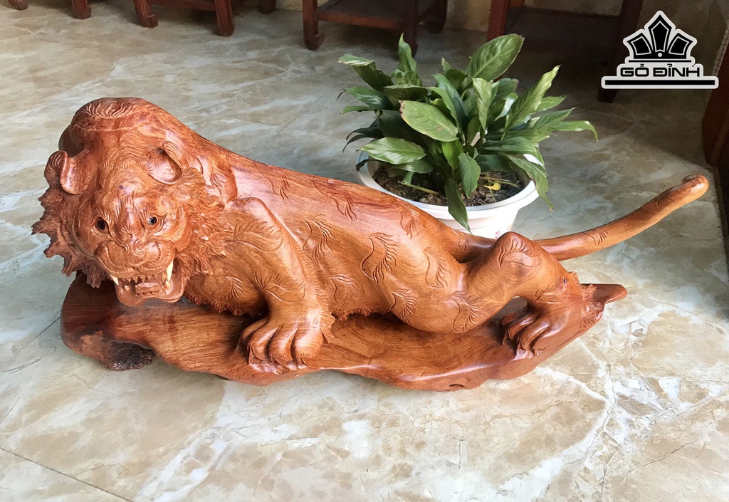 Tượng Hổ Phong Thủy Gỗ Hương Cao 33 Ngang 65 Sâu 22 (cm)