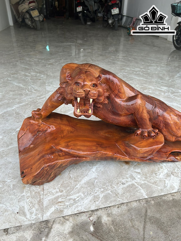 Tượng Hổ Phong Thủy Gỗ Hương Cao 45 Ngang 100 Sâu 32 (cm)
