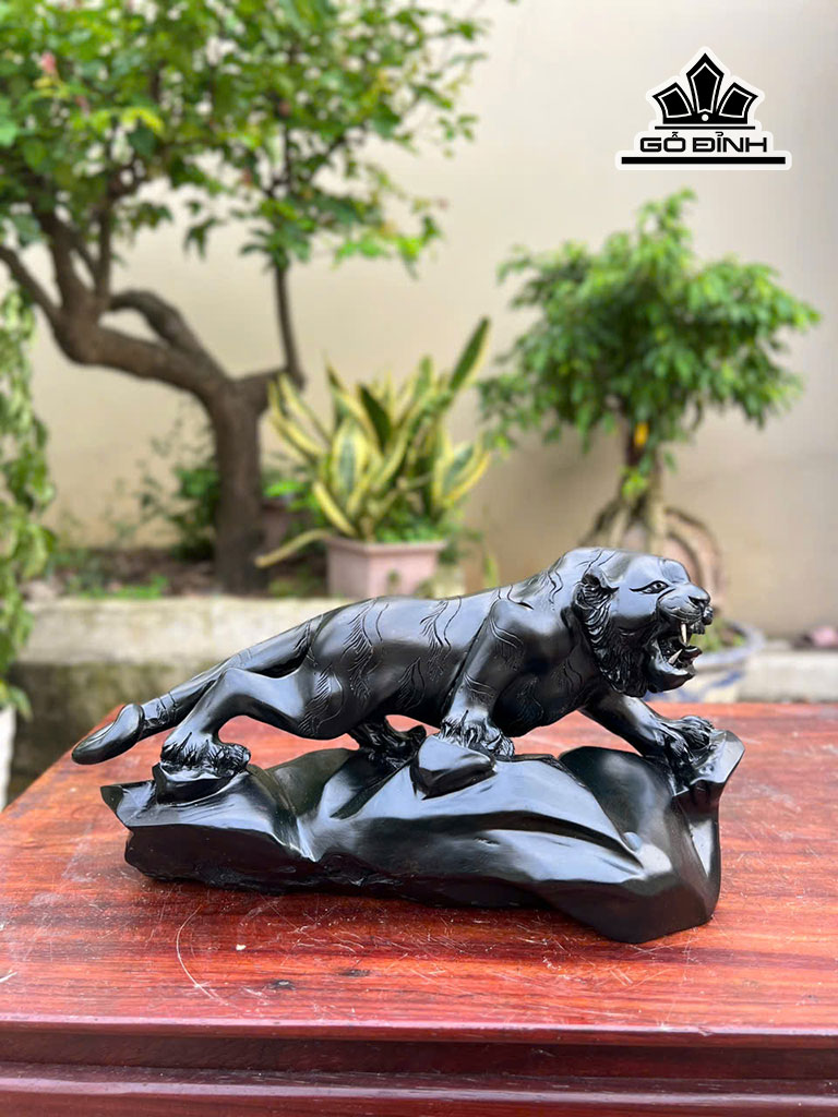 Tượng Hổ Phong Thủy Gỗ Mun Sừng Cao 16 Ngang 32 Sâu 12 (cm)