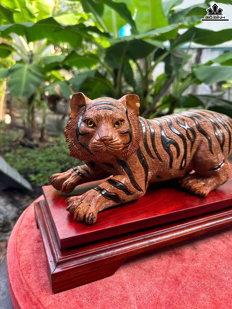 Tượng Hổ Phong Thủy Gỗ Ngọc Am Cao 15 Ngang 39 Sâu 13 (cm) - Kỷ Gỗ Hương 20x42x16