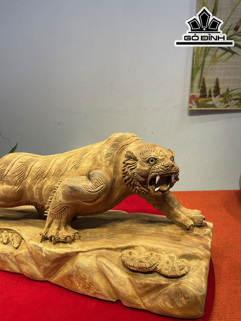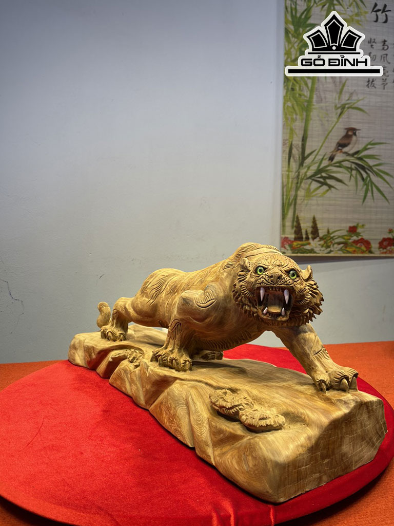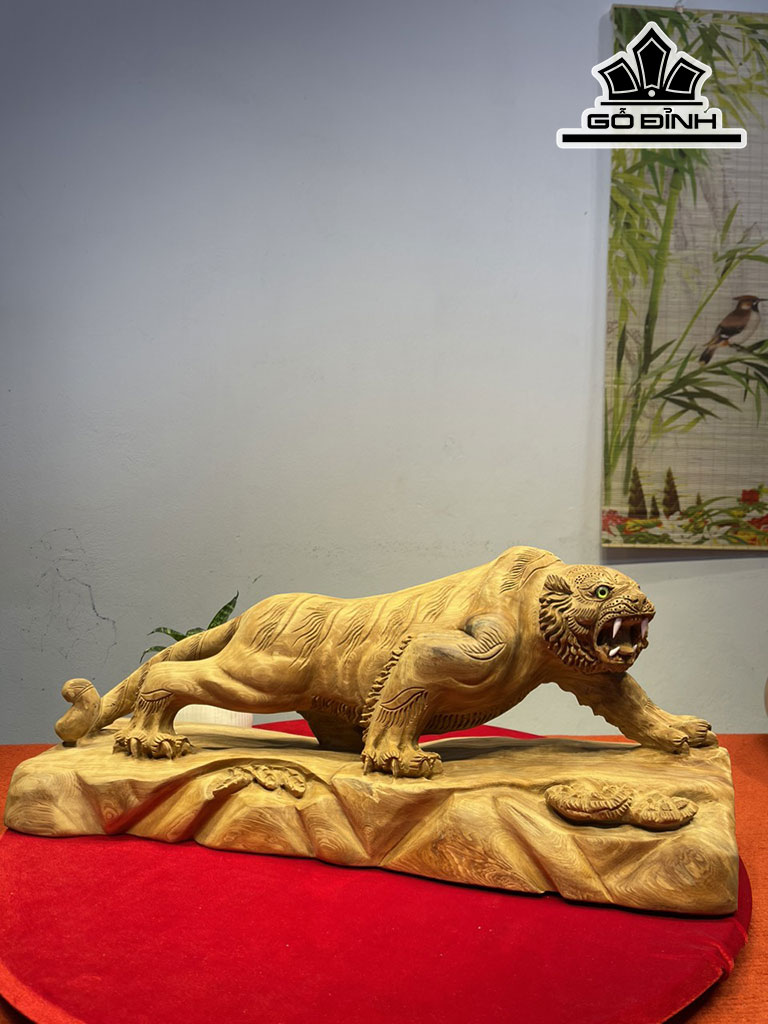Tượng Hổ Phong Thủy Gỗ Ngọc Am Cao 22 Ngang 62 Sâu 20 (cm)