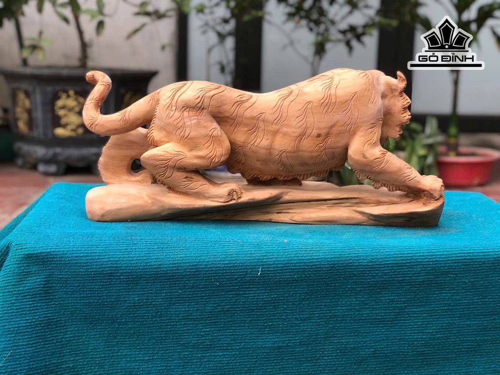 Tượng Hổ Phong Thủy Gỗ Ngọc Am Cao 26 Ngang 58 Sâu 16 (cm)