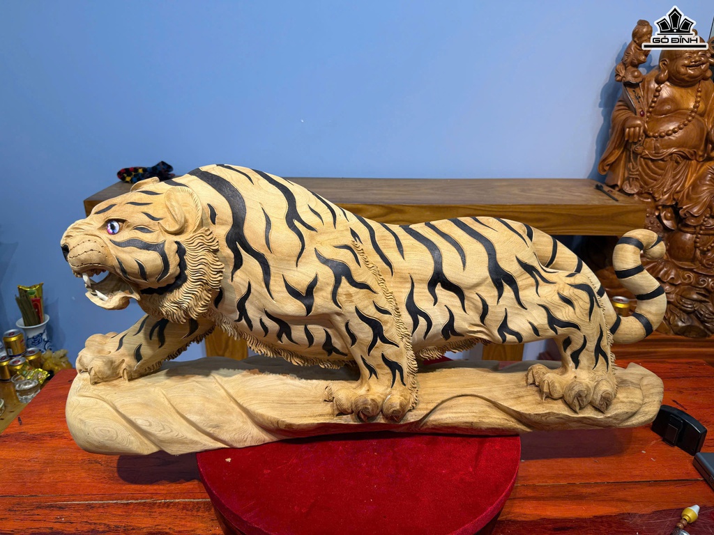 Tượng Hổ Phong Thủy Gỗ Ngọc Am Cao 41 Ngang 93 Sâu 26 (cm)