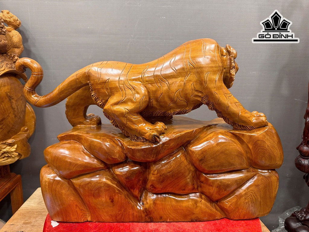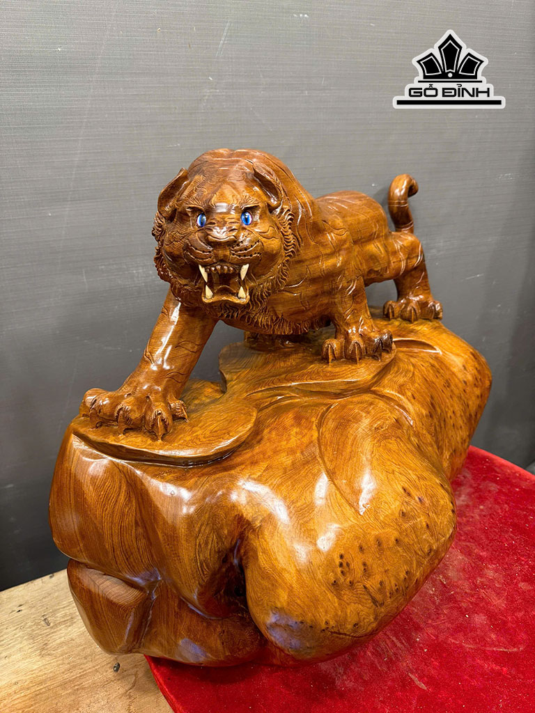Tượng Hổ Phong Thủy Gỗ Nu Ngọc Am Cao 47 Ngang 65 Sâu 30 (cm)