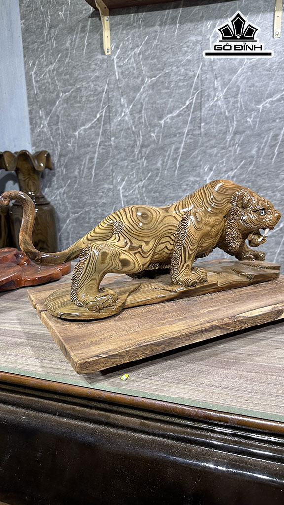 Tượng Hổ Phong Thủy Gỗ Thủy Tùng Cao 20 Ngang 56 Sâu 16 (cm)