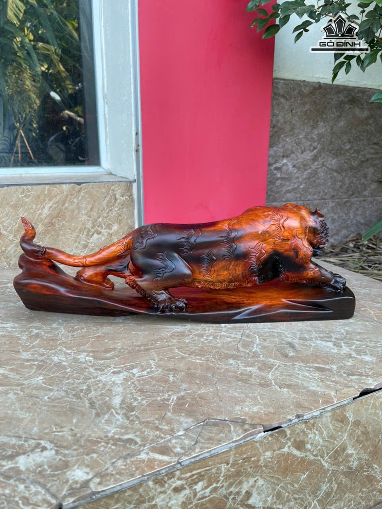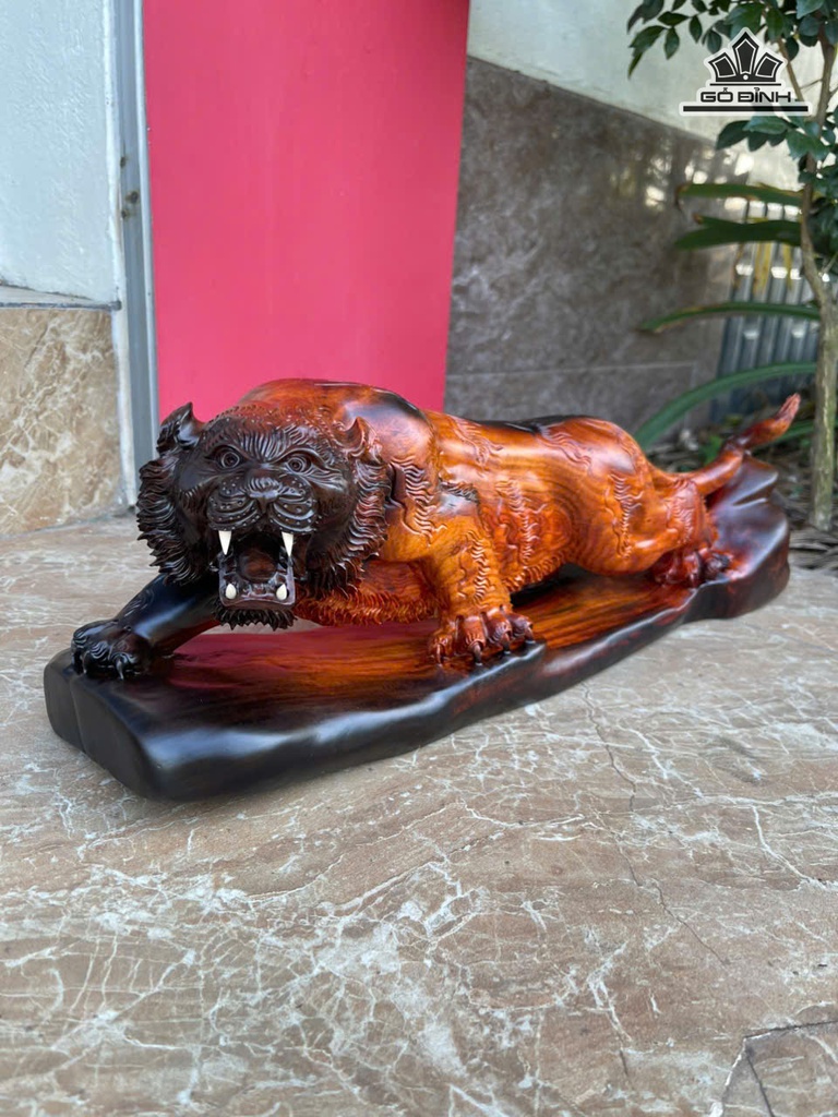 Tượng Hổ Phong Thủy Gỗ Trắc Cao 16 Ngang 46 Sâu 13 (cm)