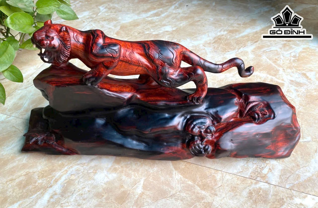 Tượng Hổ Phong Thủy Gỗ Trắc Cao 25 Ngang 52 Sâu 16 (cm)