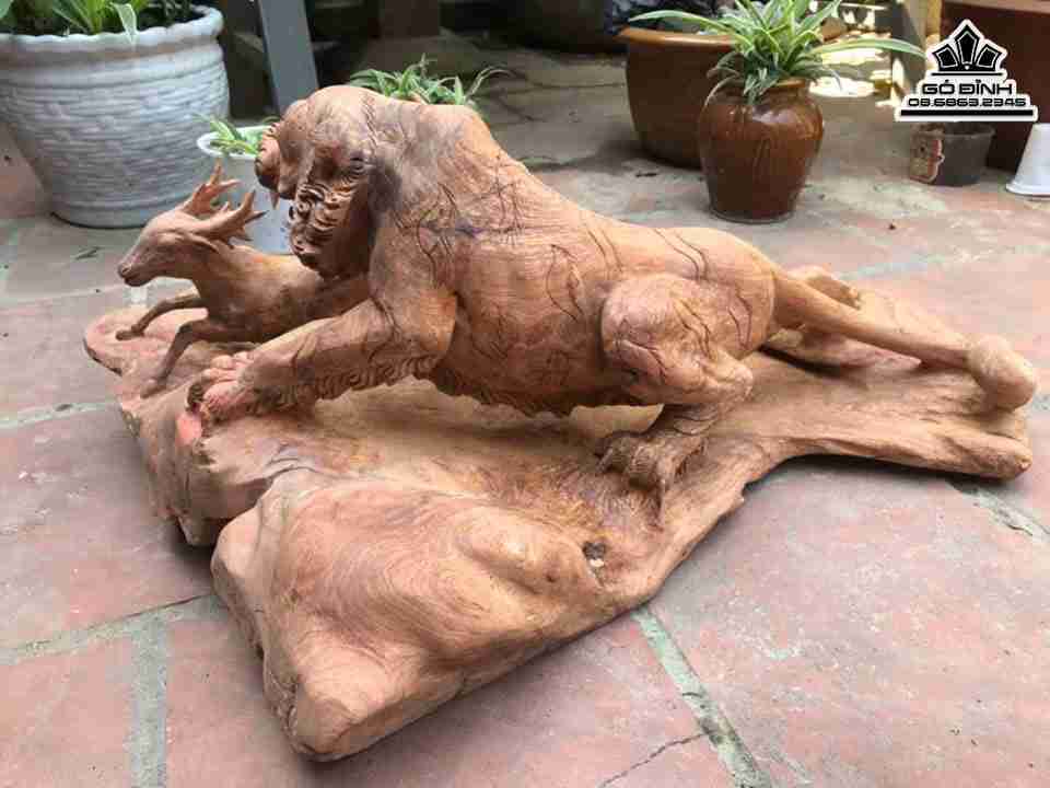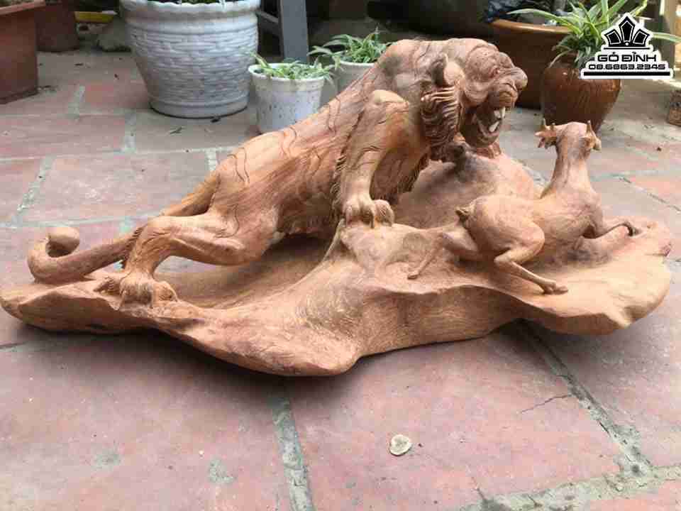 Tượng Hổ Săn Mồi Gỗ Hương Cao 28 Ngang 68 Sâu 43 (cm)