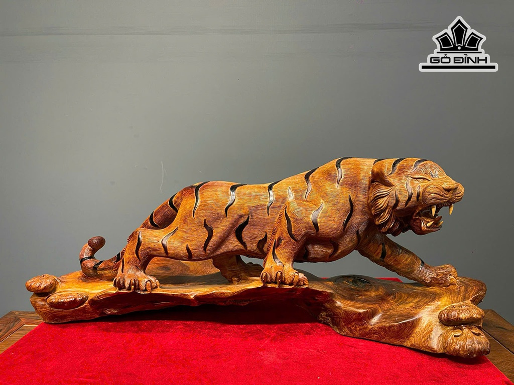 Tượng Hổ Săn Mồi Gỗ Hương Cao 29 Ngang 81 Sâu 30 (cm)