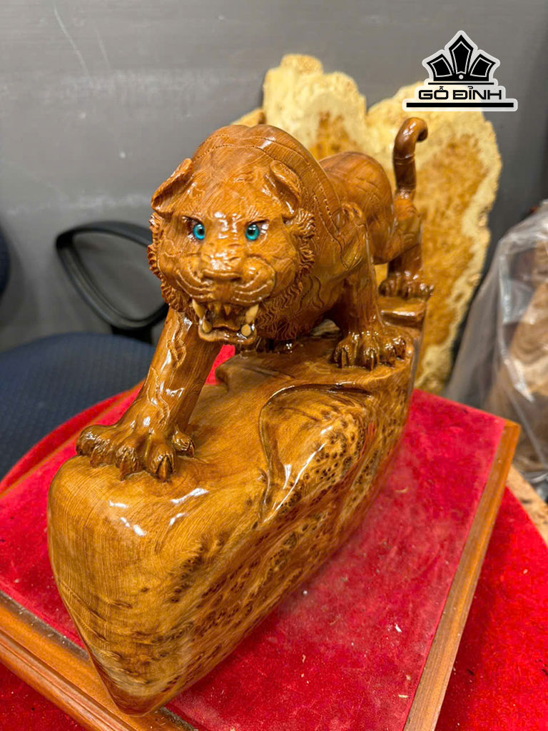 Tượng Hổ Săn Mồi Gỗ Nu Ngọc Am Cao 30 Ngang 45 Sâu 14 (cm)