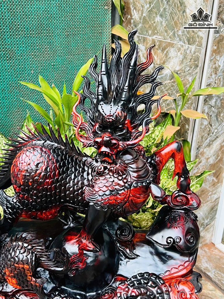 Tượng Hỏa Kỳ Lân Mẫu Tử Gỗ Trắc Cao 58 Ngang 52 Sâu 23 (cm)