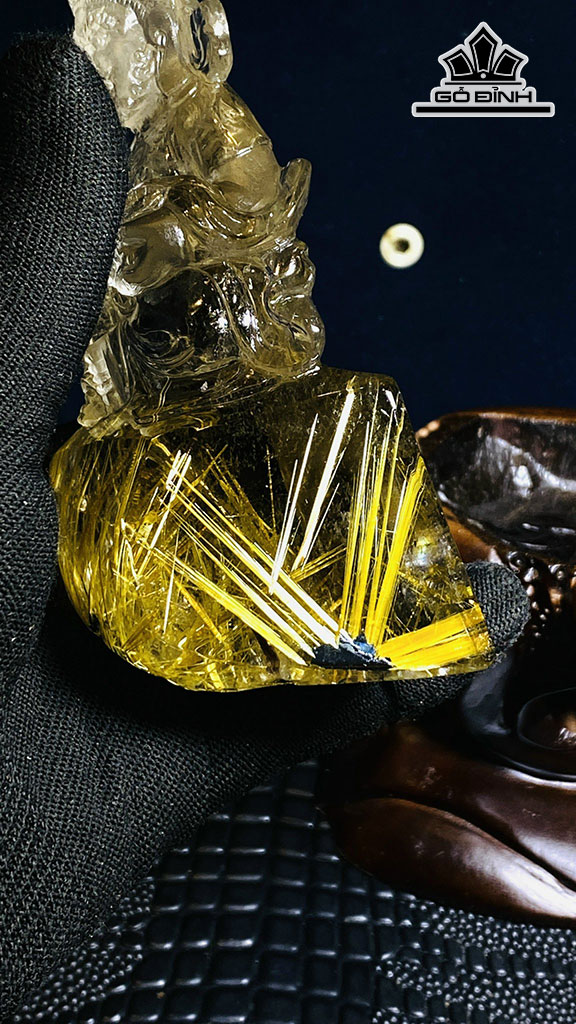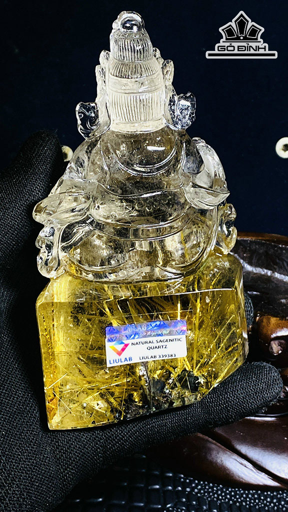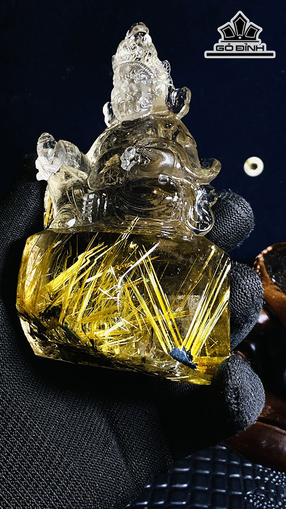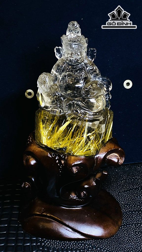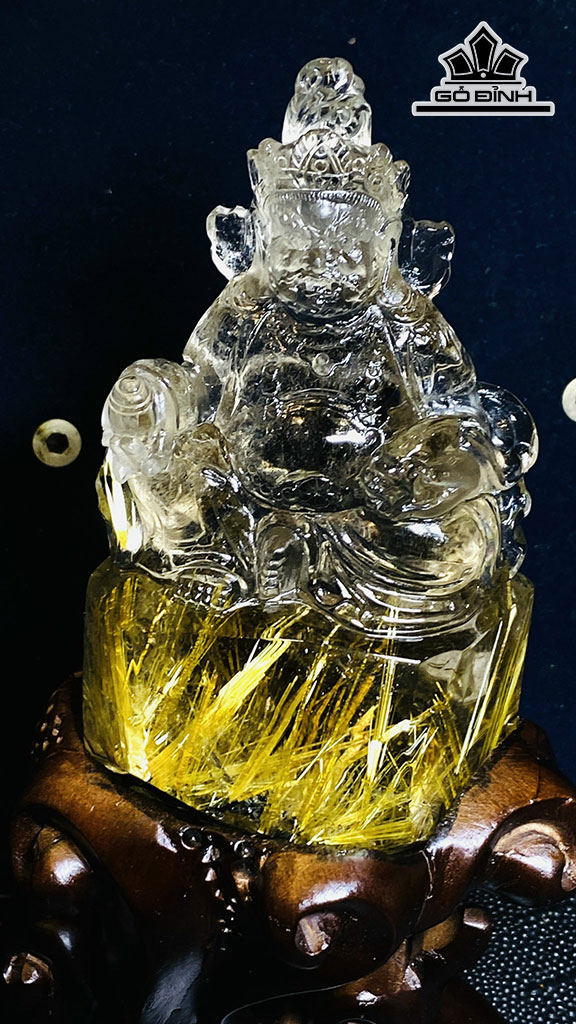 Tượng Hoàng Thần Tài Bảo Thiên Đá Thạch Anh Tóc Vàng Cao 120,85 Ngang 46,15 (mm) 0,4kg