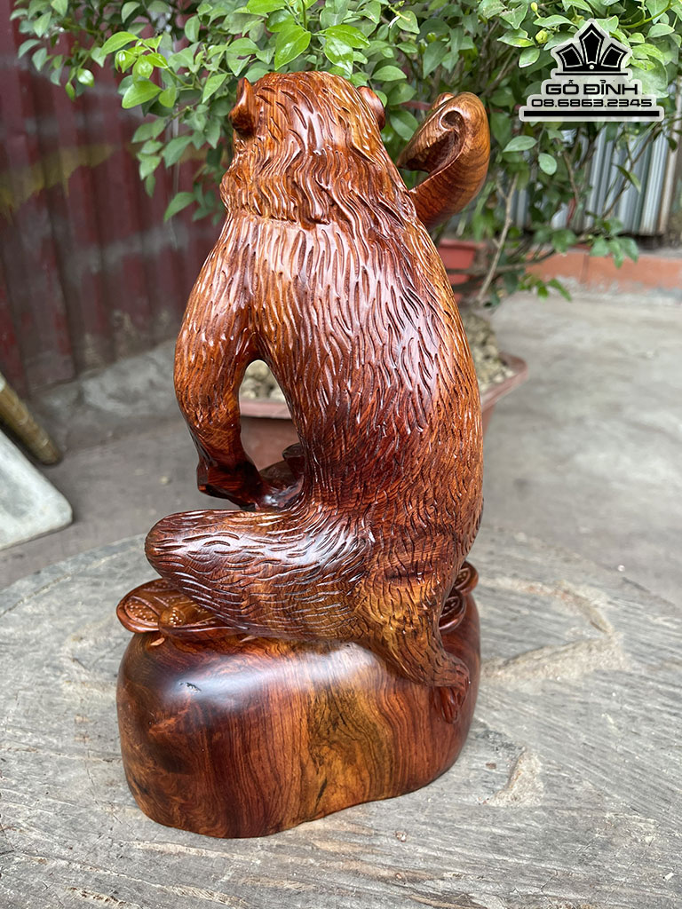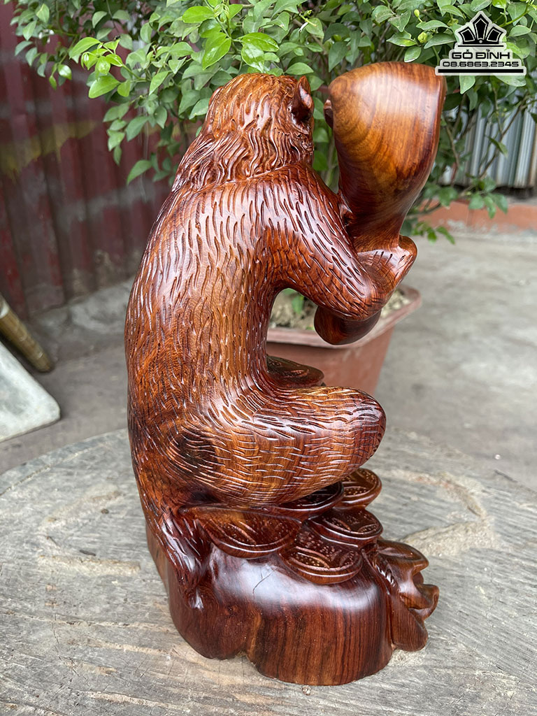 Tượng Khỉ Gỗ Hương Liền Khối Cao 30 Ngang 21 Sâu 15 (cm)