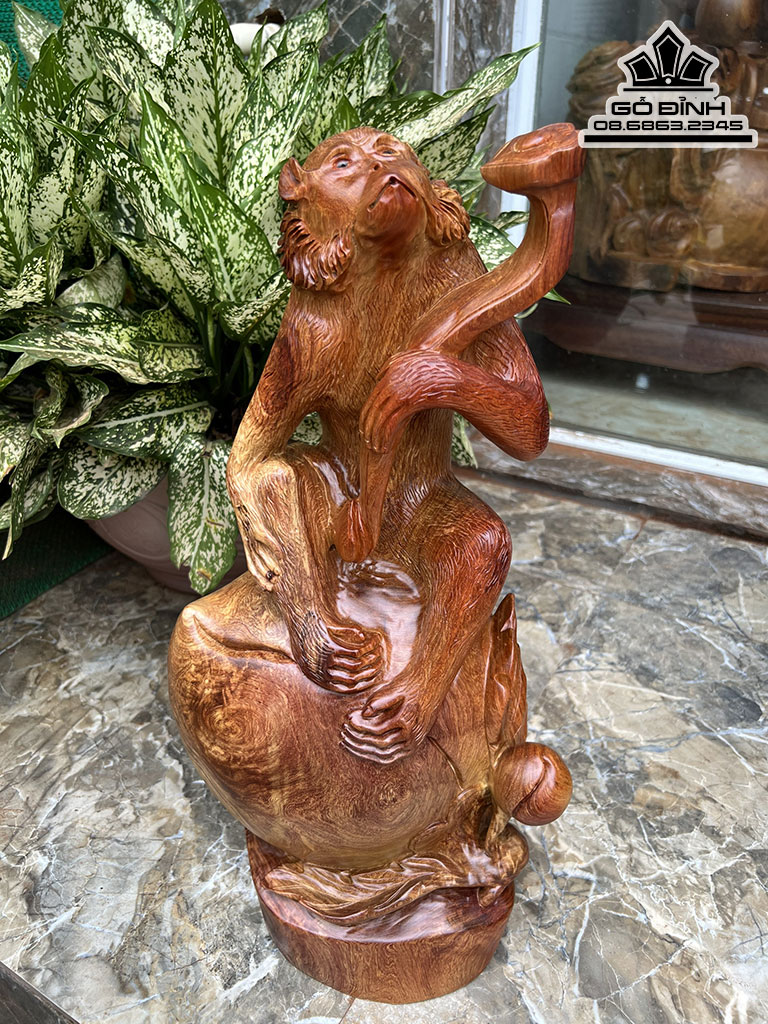 Tượng Khỉ Gỗ Hương Nguyên Khối Cao 51 Ngang 27 Sâu 23 (cm)