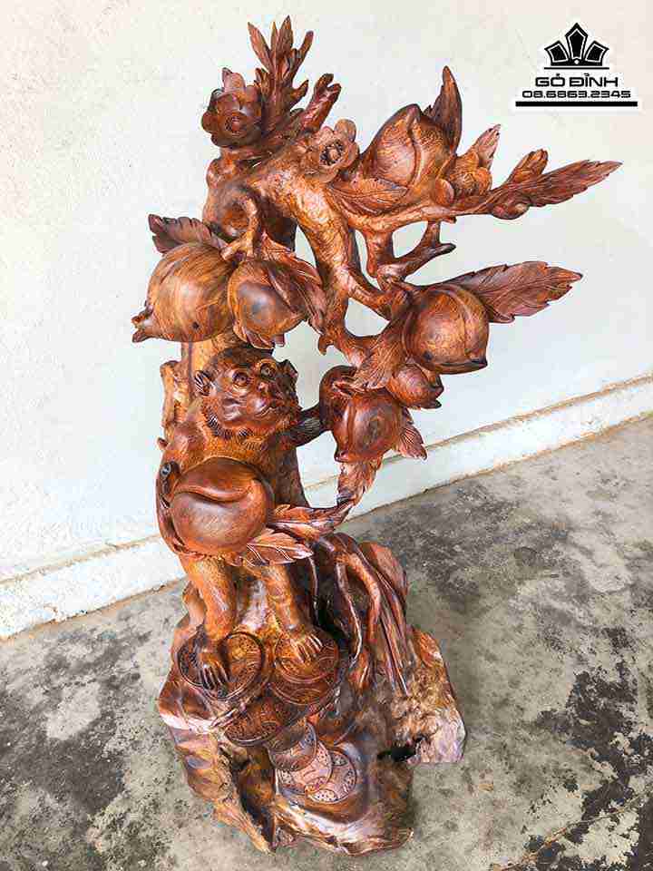 Tượng Khỉ Hái Đào Tiên Gỗ Hương Cao 85 Rộng 50 Dày 35 (cm)