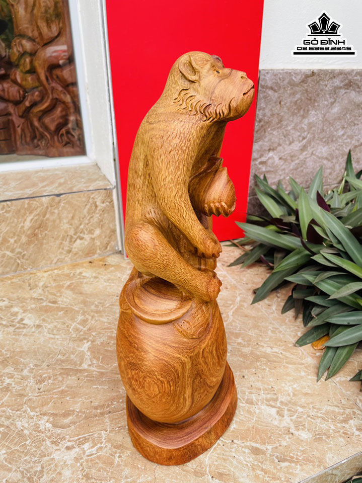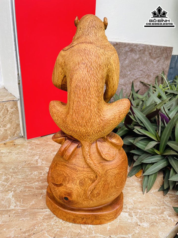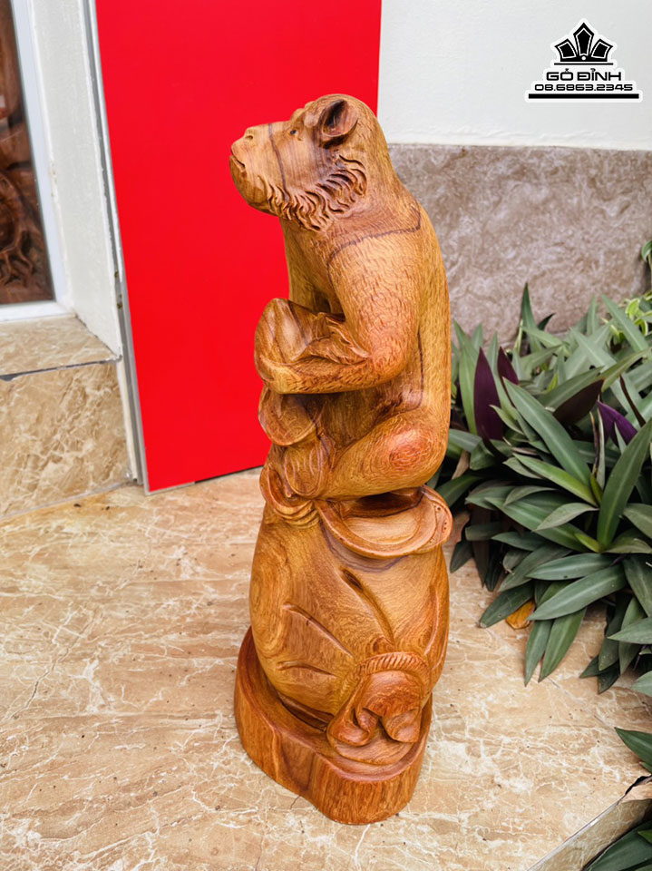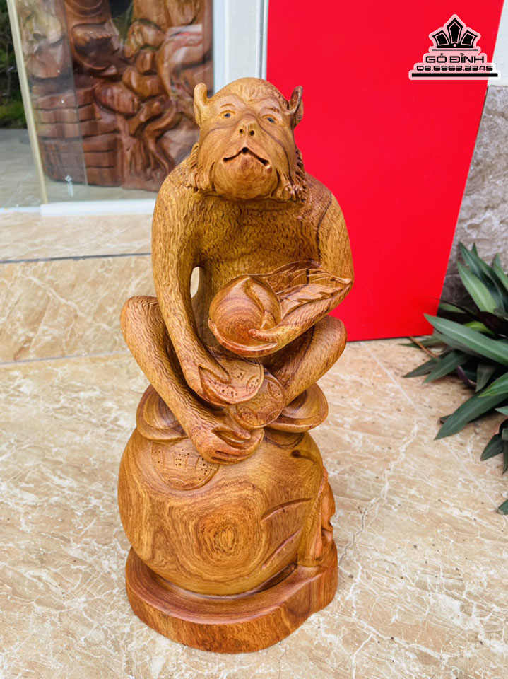 Tượng Khỉ Ôm Đào Gỗ Hương Cao 43 Ngang 20 Sâu 15 (cm)