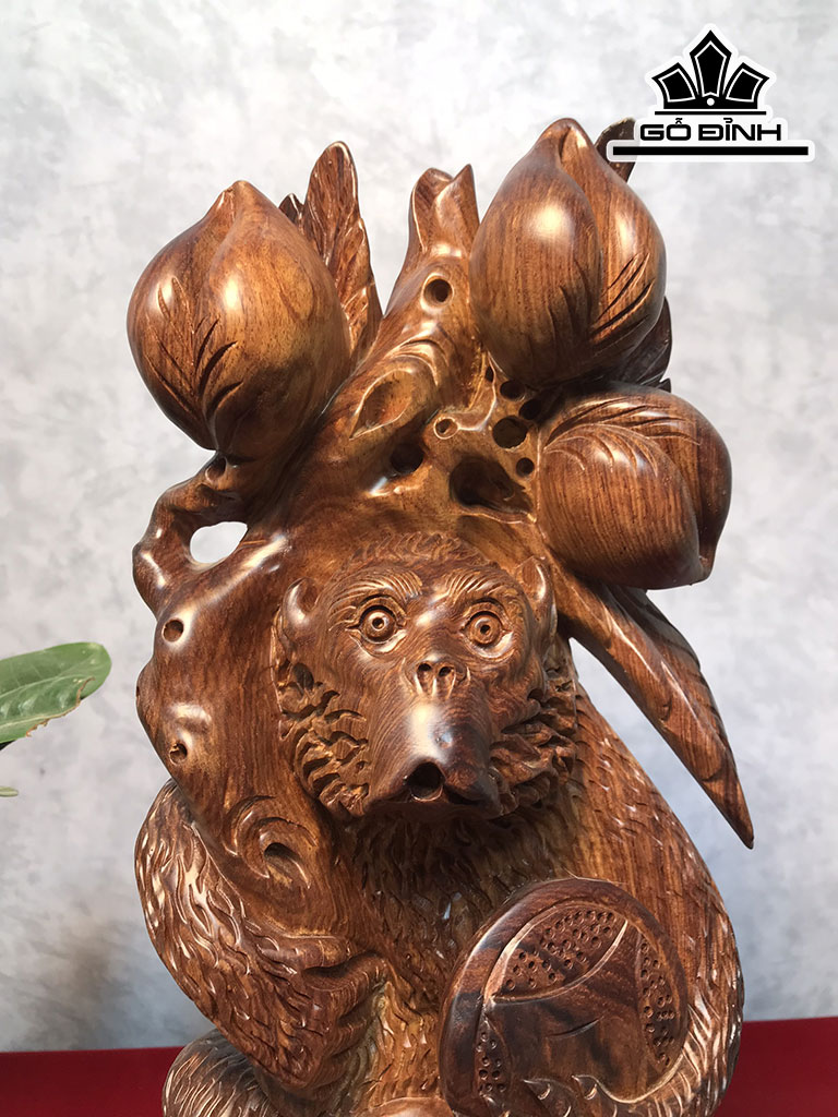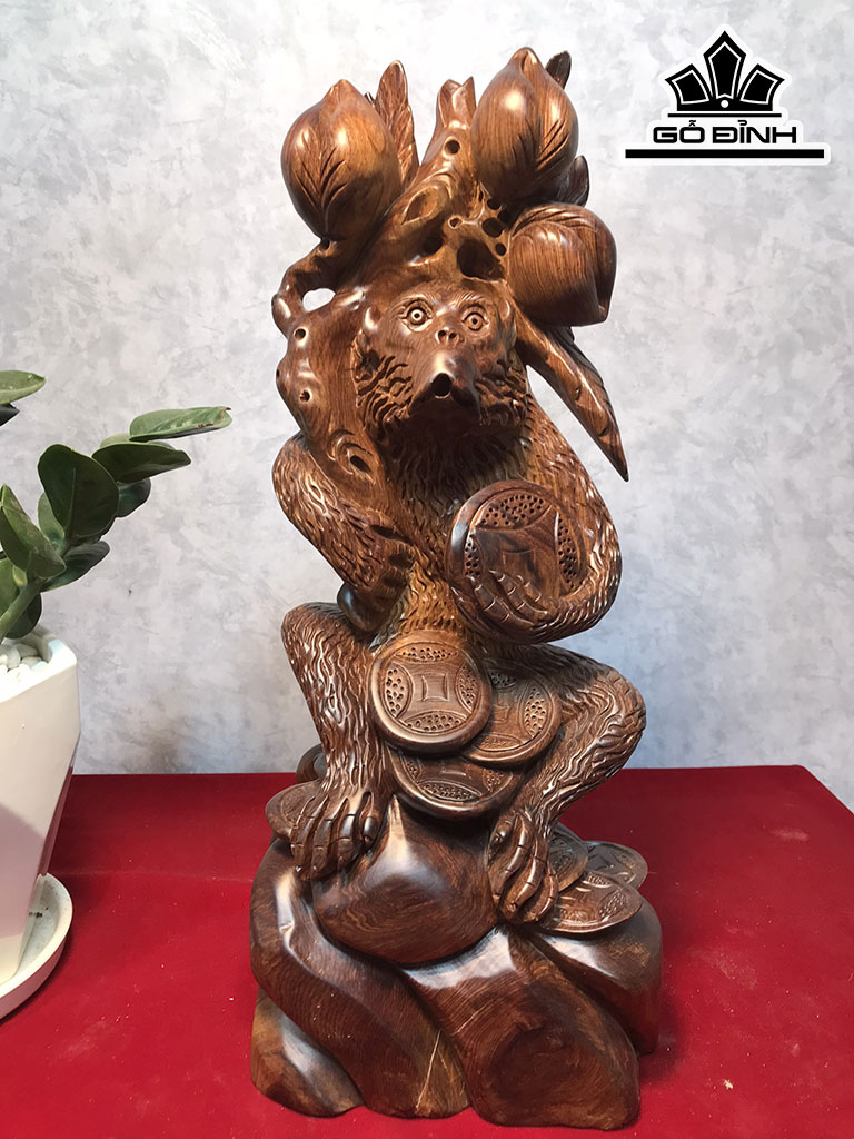 Tượng Khỉ Vác Đào Gỗ Cẩm Cao 40 Ngang 17 Sâu 11 (cm)
