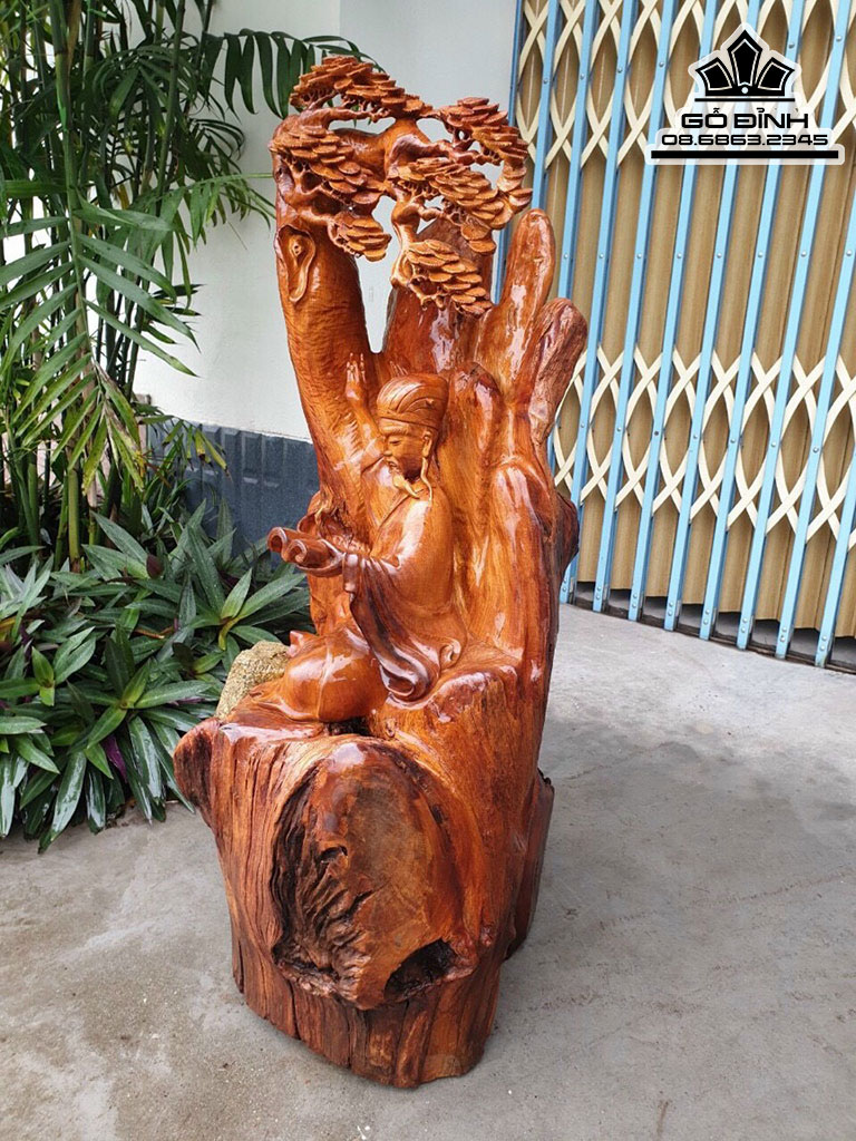 Tượng Khổng Minh Đọc Sách Ngự Gốc Tùng Ôm Đá Tự Nhiên Gỗ Hương