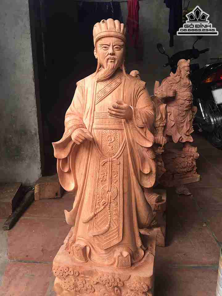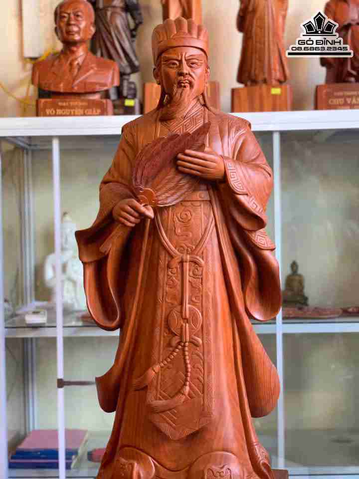 Tượng Khổng Minh Gia Cát Lượng Gỗ Hương Cao 80 Ngang 26 Sâu 19 (cm)