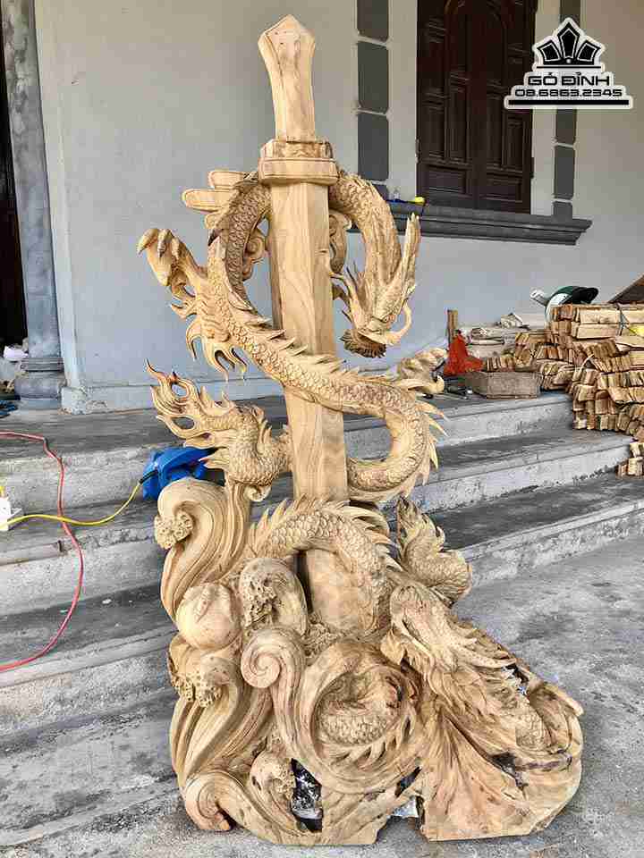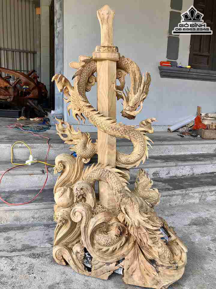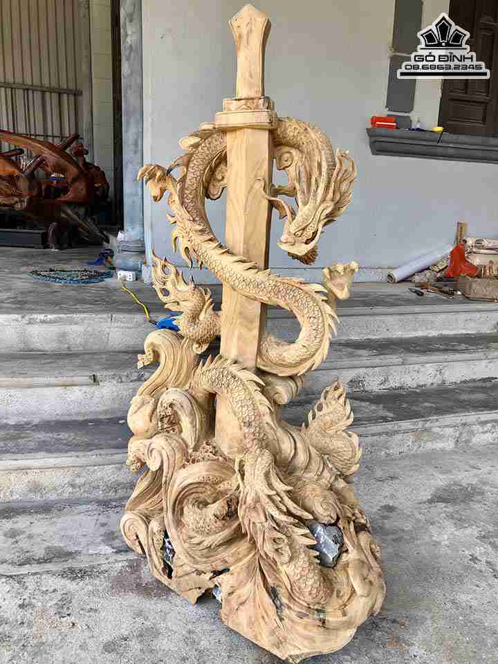Tượng Kiếm Rồng Gỗ Xá Xị ( Gù Hương ) Cao 132 Rộng 70 Dày 40 (cm)