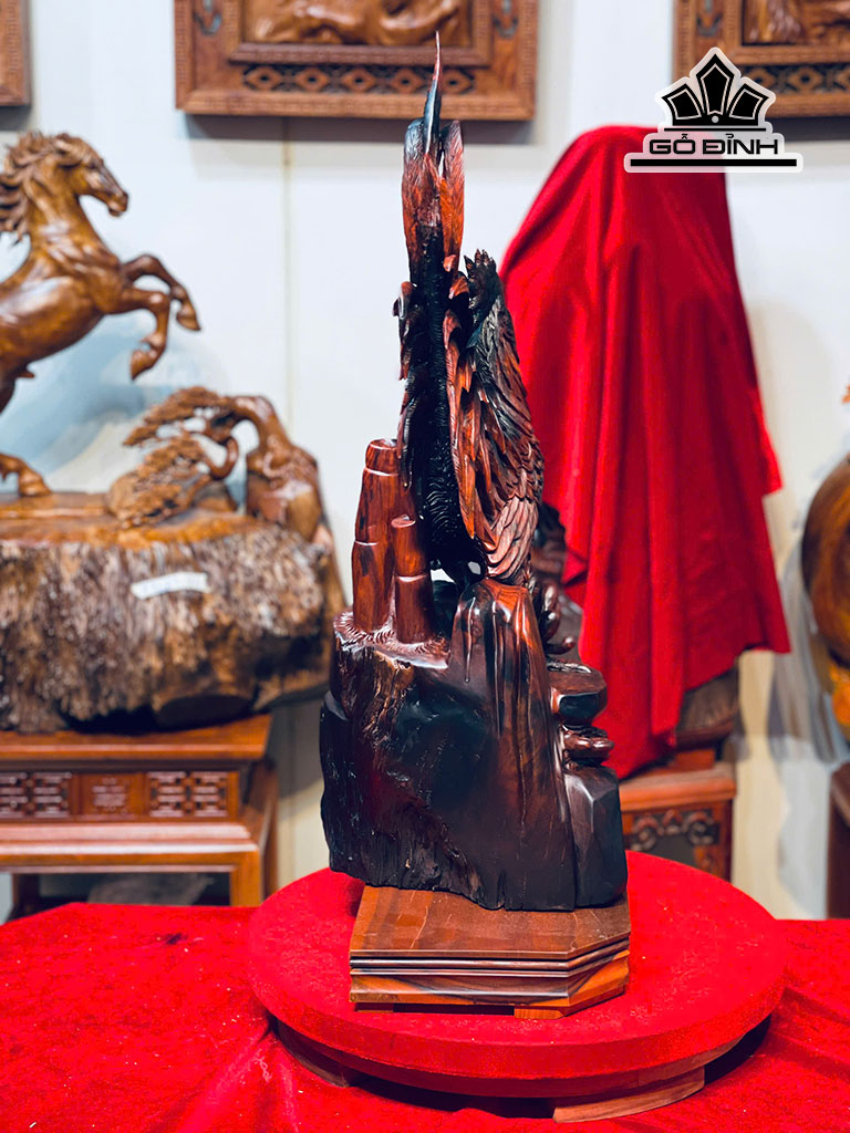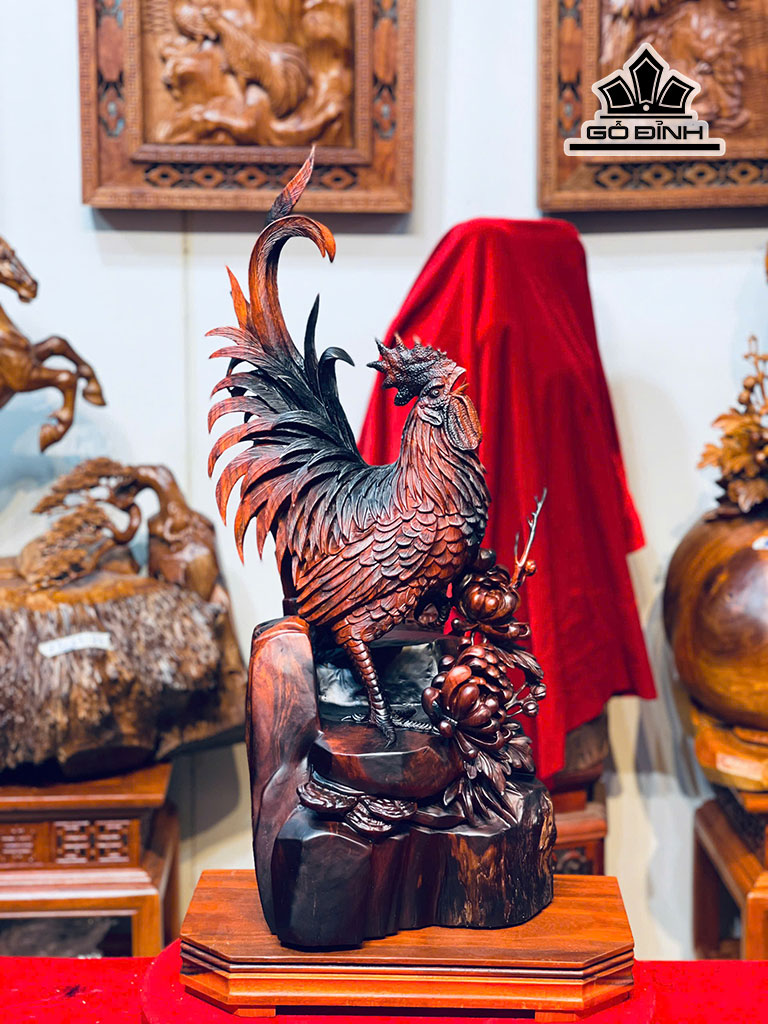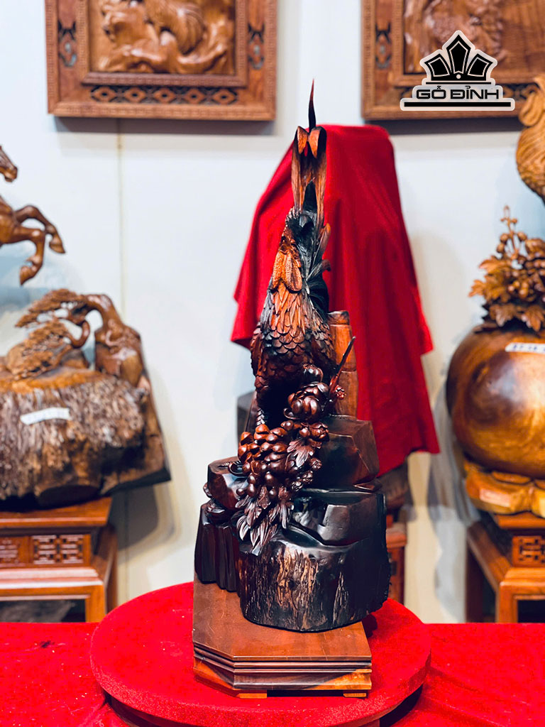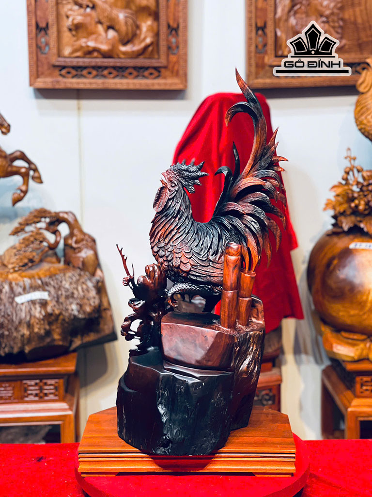 Tượng Kim Kê Đại Cát Gỗ Trắc Cao 69 Ngang 28 Sâu 23 (cm)