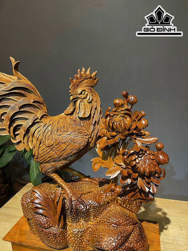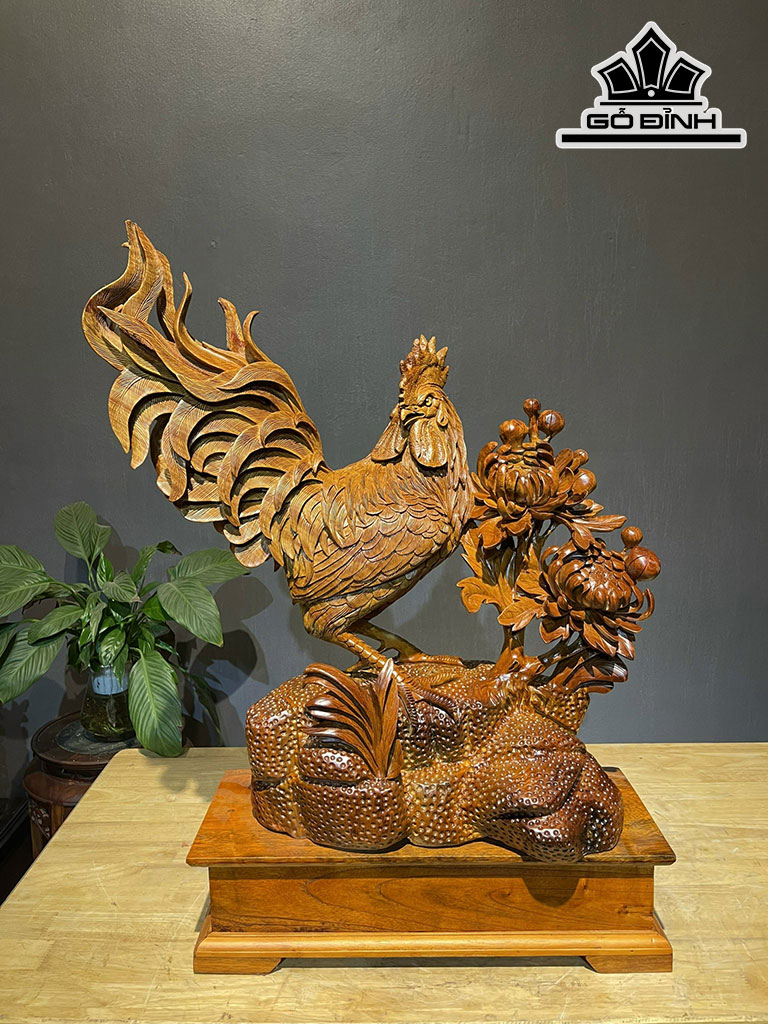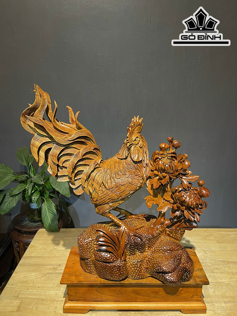 Tượng Kim Kê Tài Lộc Gỗ Hương Cao Cả Kỷ 75 Ngang 60 Sâu 28 (cm)