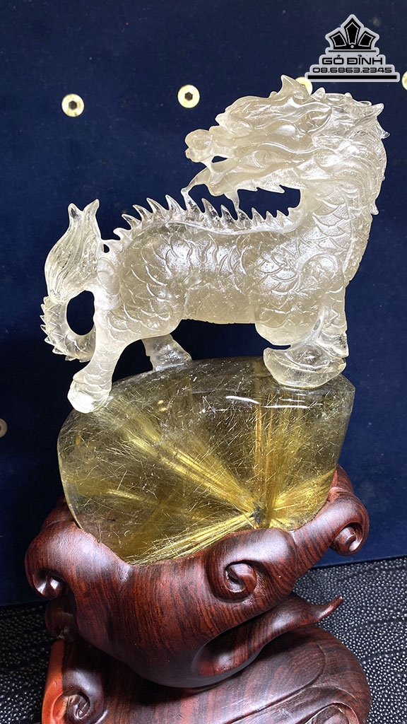 Tượng Kỳ Lân Đá Thạch Anh Tóc Vàng Cao 146 Ngang 120 Sâu 42.8 (mm)