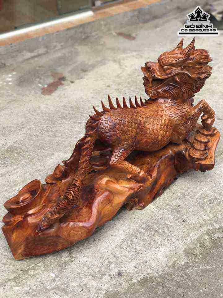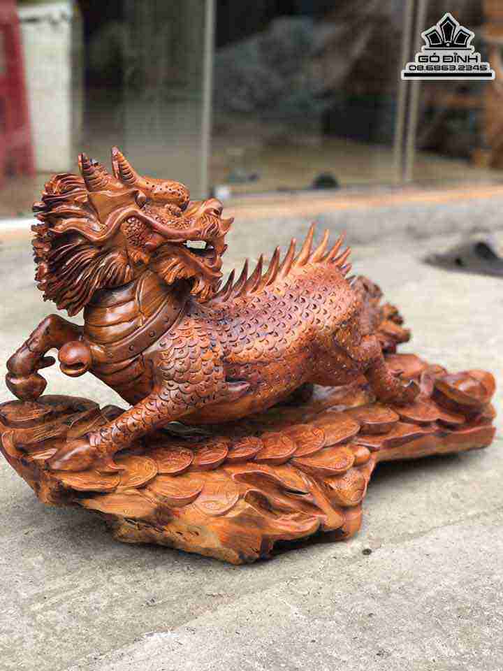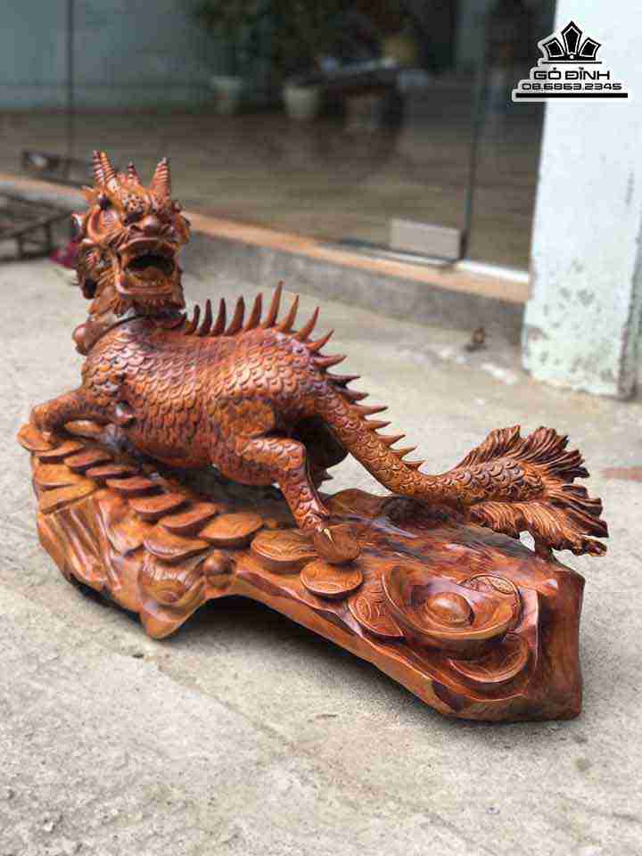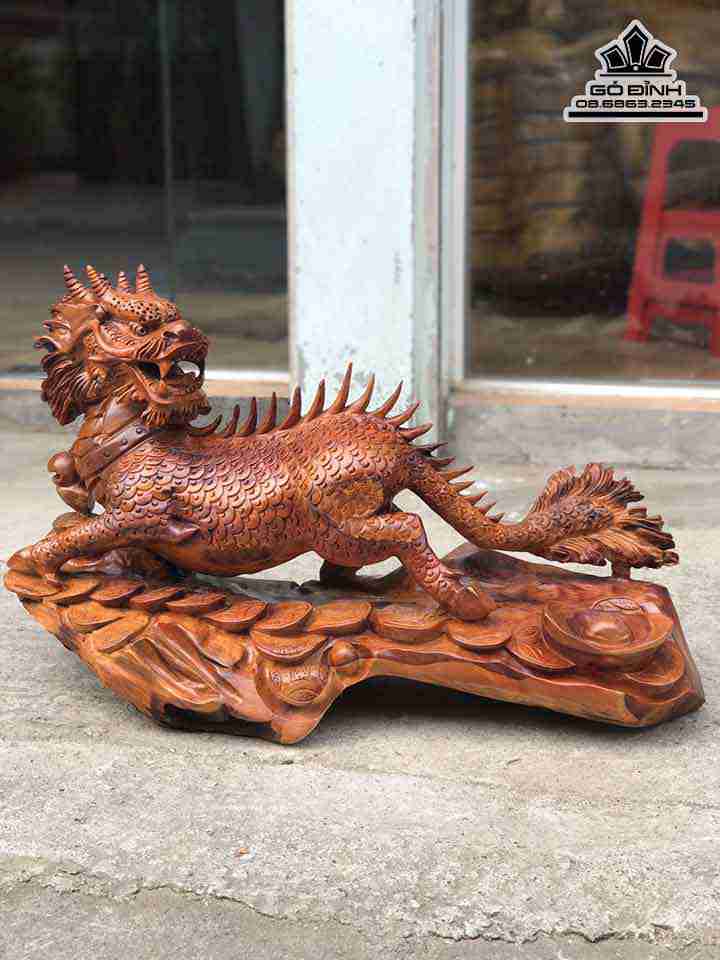 Tượng Kỳ Lân Gỗ Hương Cao 45 Ngang 72 Sâu 35 (cm)