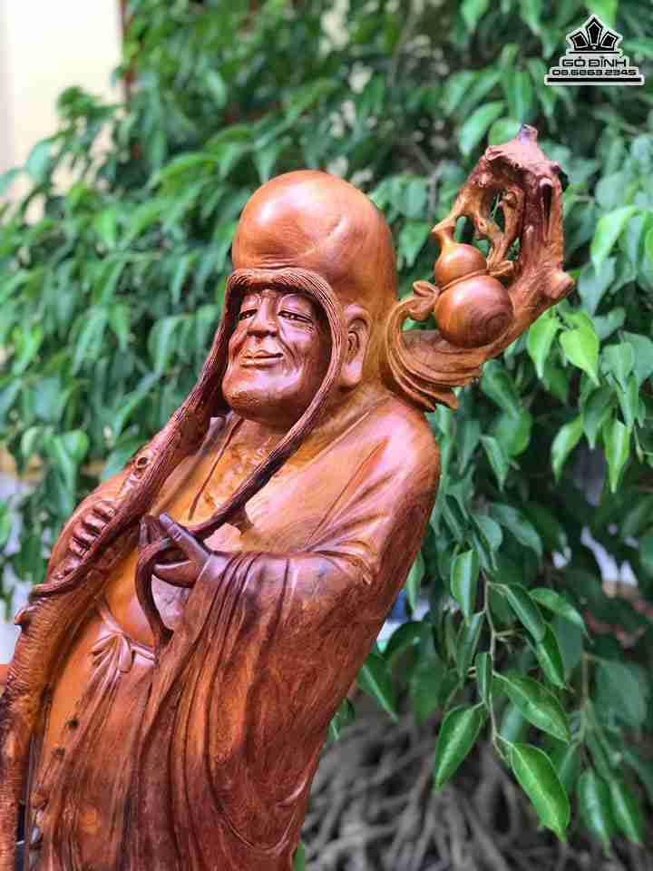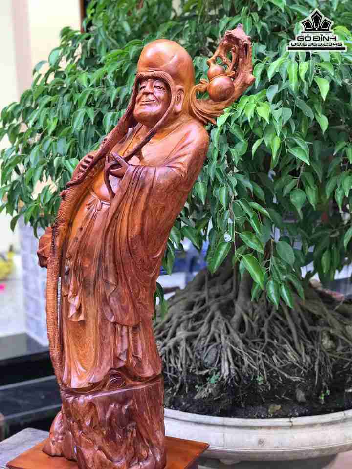 Tượng La Hán Trường Mi Gỗ Hương Cao 90 Ngang 35 Sâu 30 (cm)