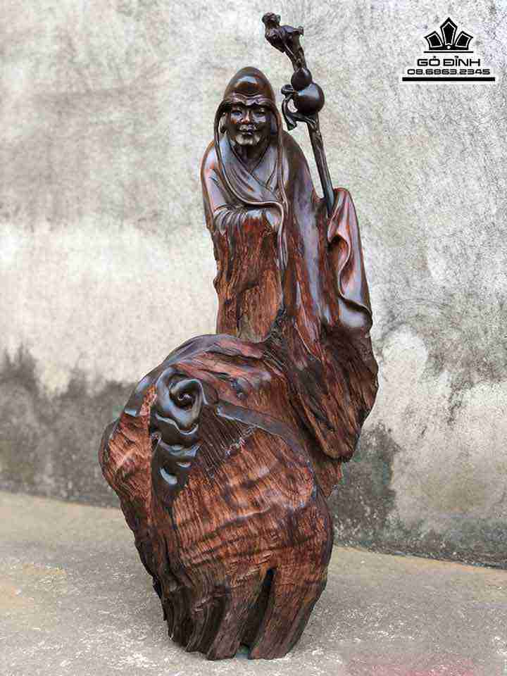 Tượng La Hán Trường Mi Gỗ Trắc Cao 60 Rộng 26 Dày 24 (cm)