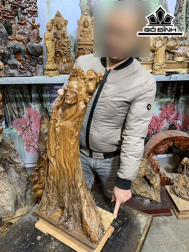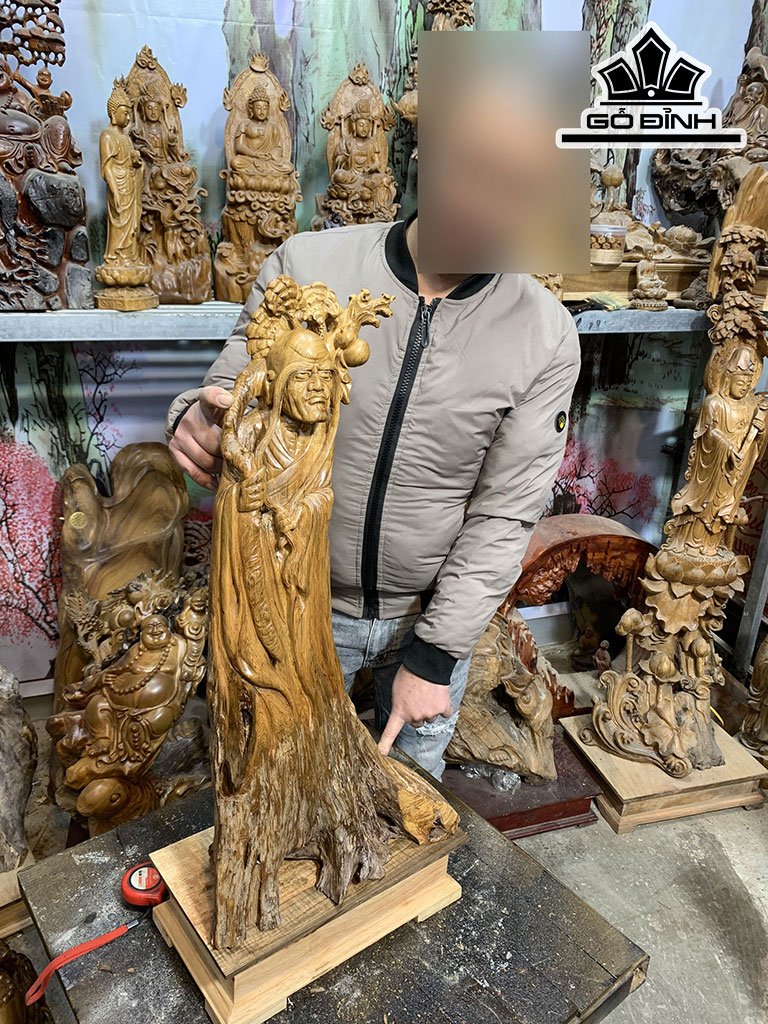 Tượng La Hán Trường My Gỗ Bách Xanh Cao Cả Kỷ 79 Ngang 35 Sâu 20 (cm)
