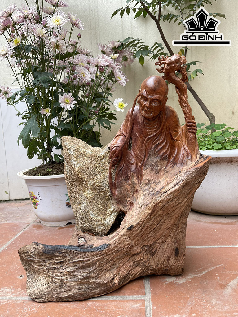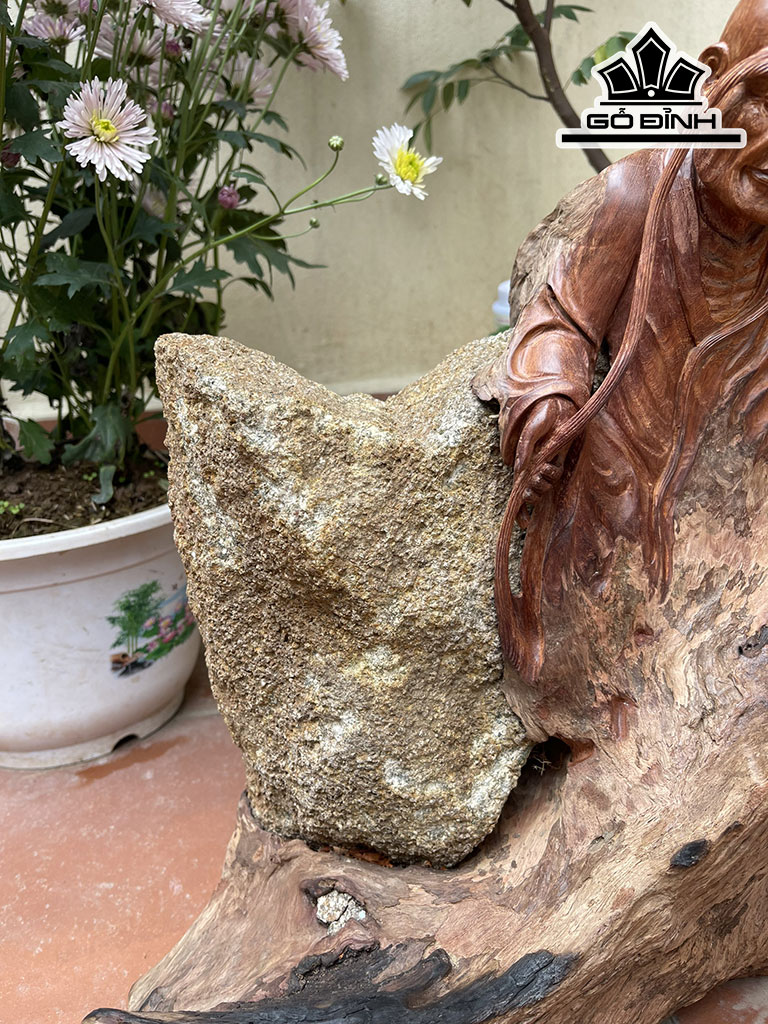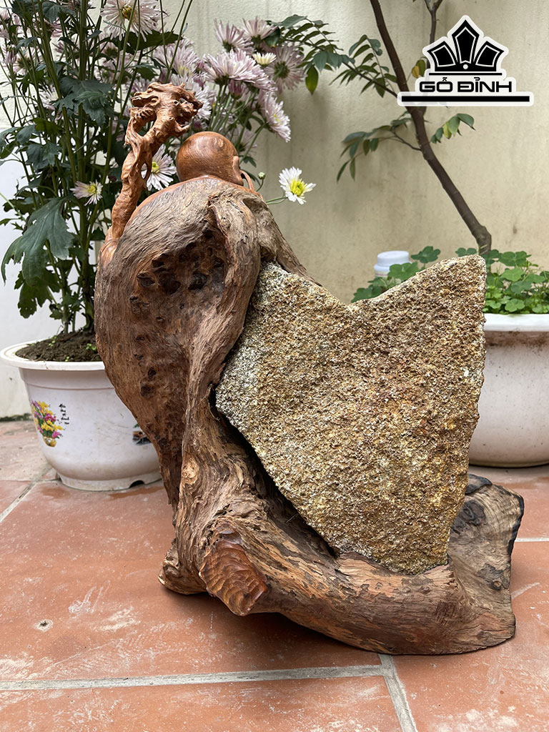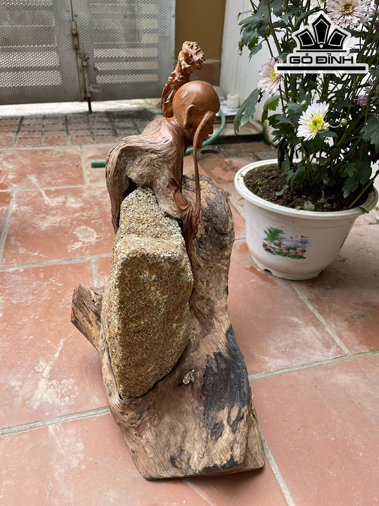 Tượng La Hán Trường My Gỗ Hương Ôm Đá Cao 47 Ngang 40 Sâu 28 (cm)