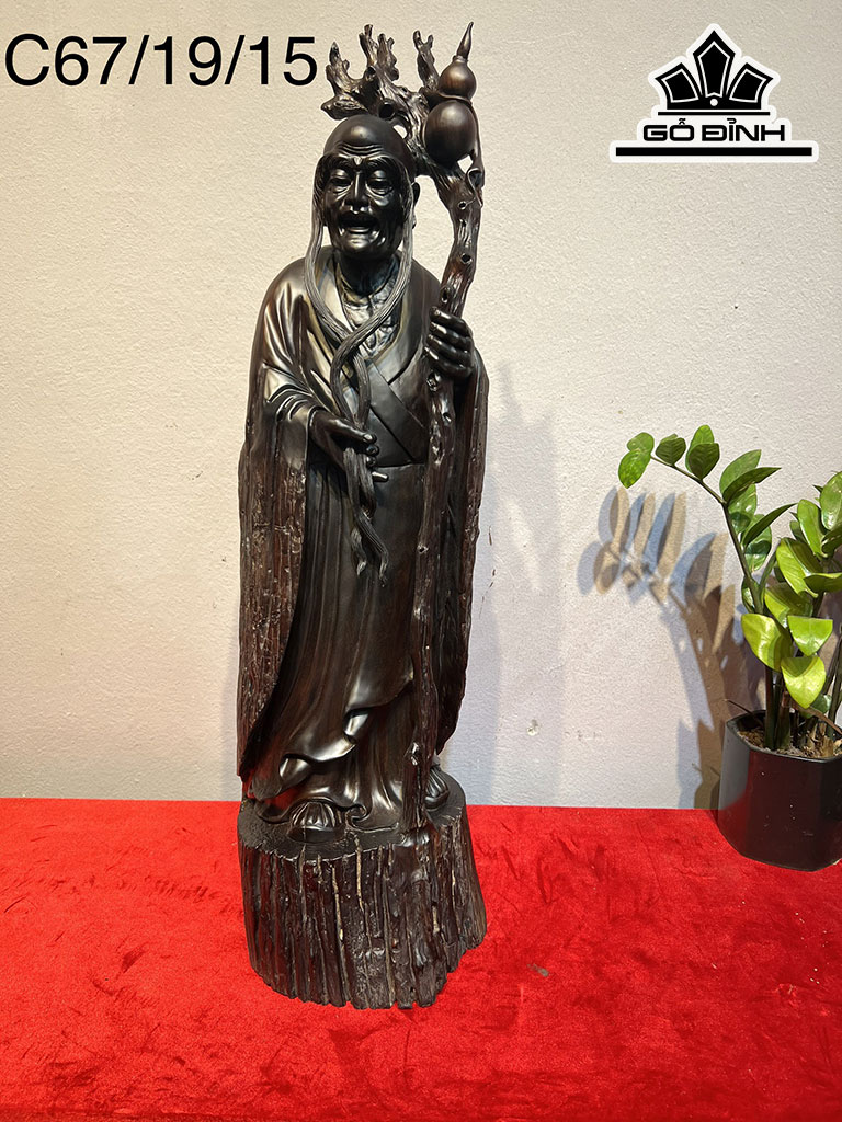 Tượng La Hán Trường My Gỗ Mun Sừng Cao 67 Ngang 19 Sâu 15 (cm)