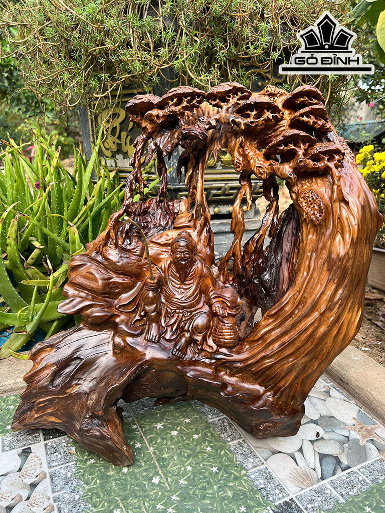 Tượng Lã Vọng Câu Cá Gỗ Bách Xanh Cao 48 Ngang 40 Sâu 12 (cm)