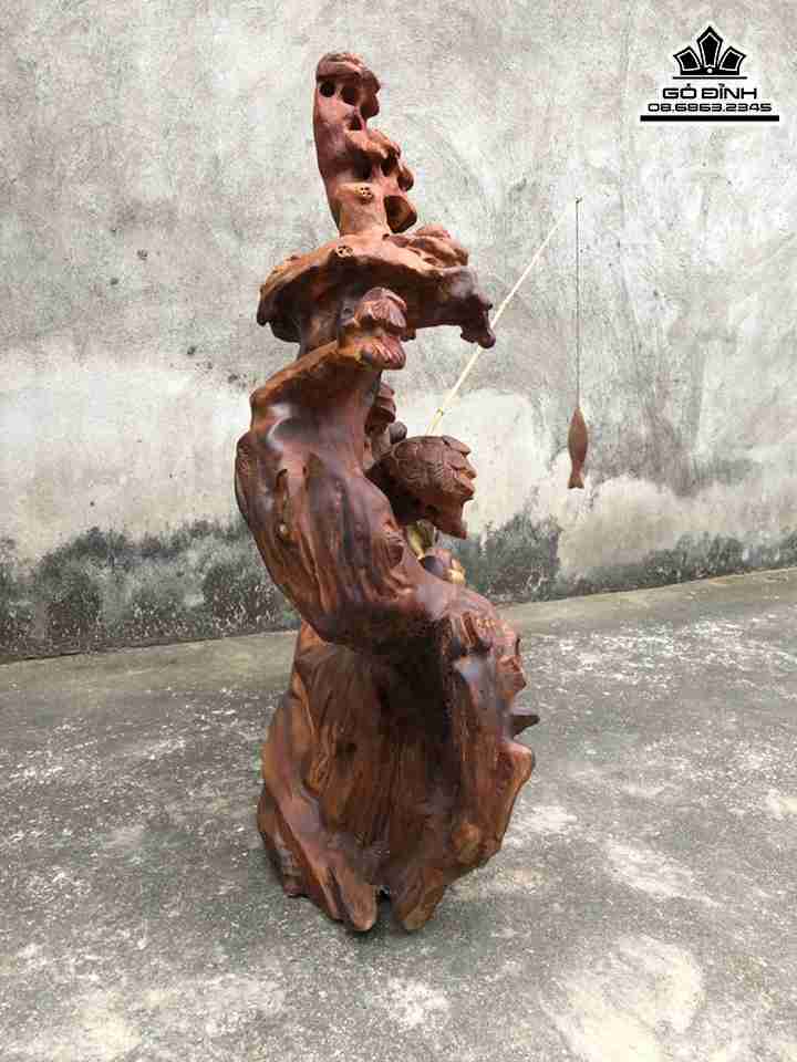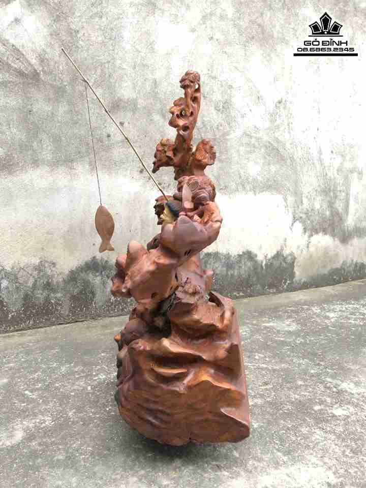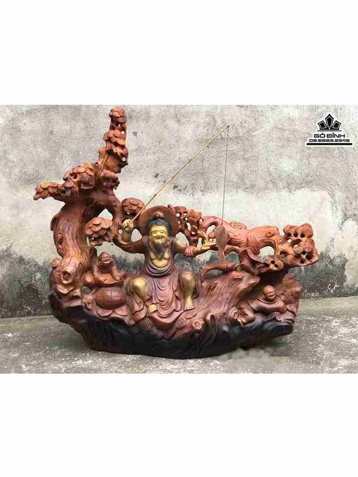 Tượng Lã Vọng Câu Cá Gỗ Hương Cao 64 Rộng 70 Dày 20 (cm)