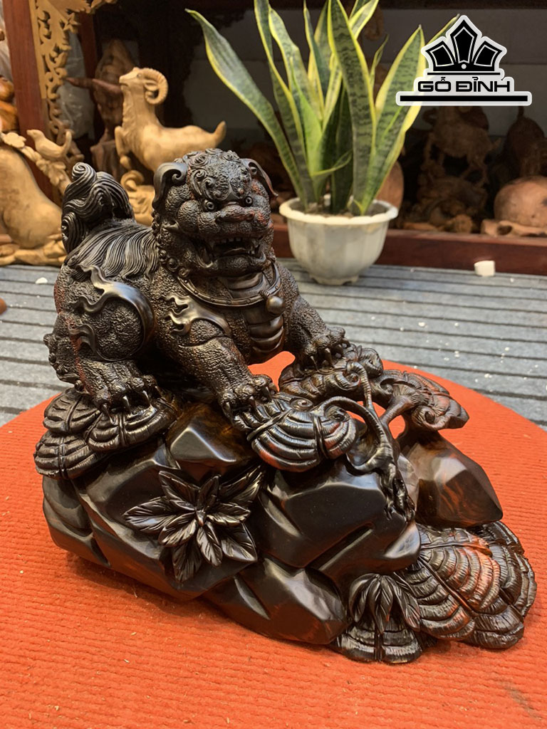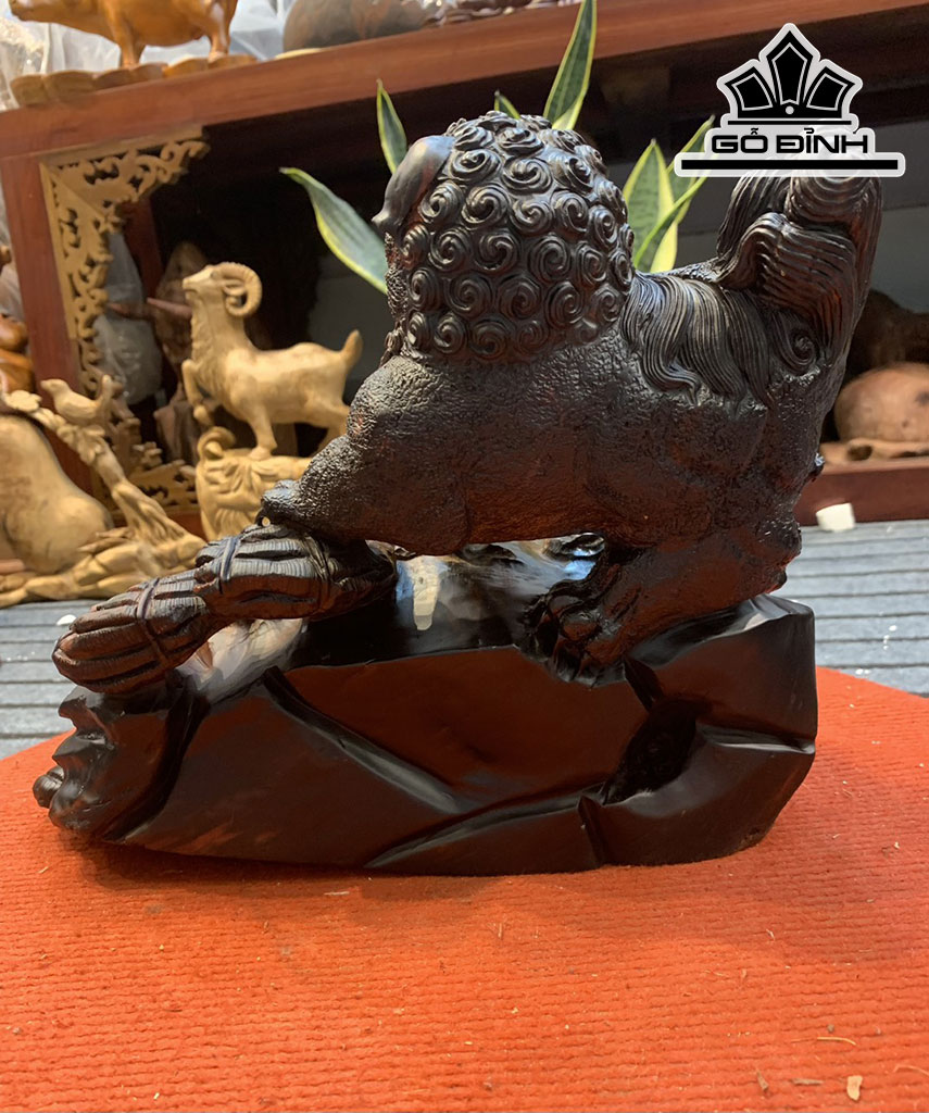 Tượng Lân Sư Gỗ Trắc Cao 22 Ngang 30 Sâu 15 (cm)