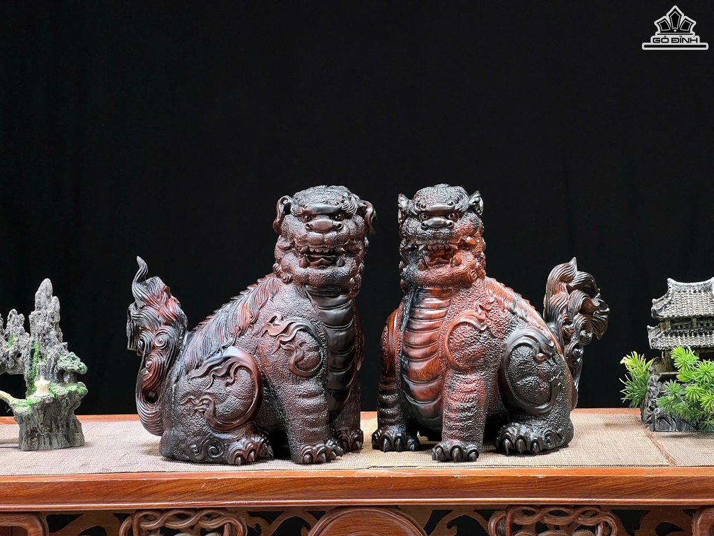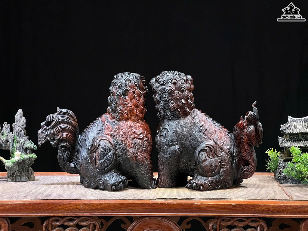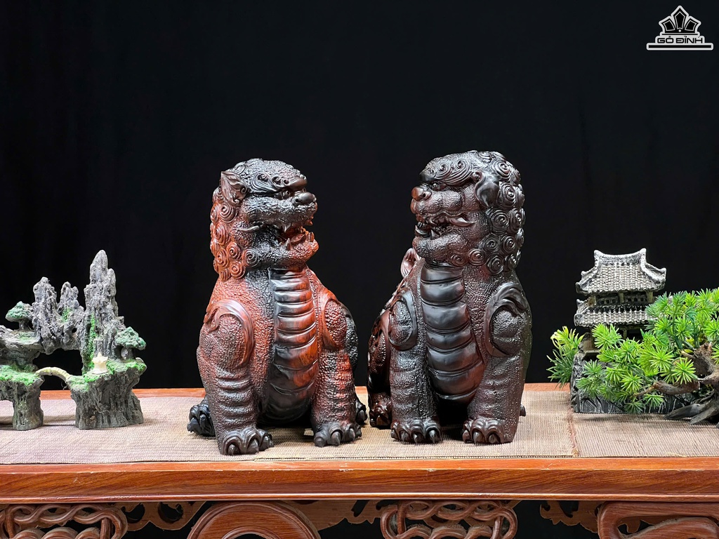 Tượng Lân Sư Phong Thủy Gỗ Trắc Cao 26 Ngang 25 Sâu 14 (cm)