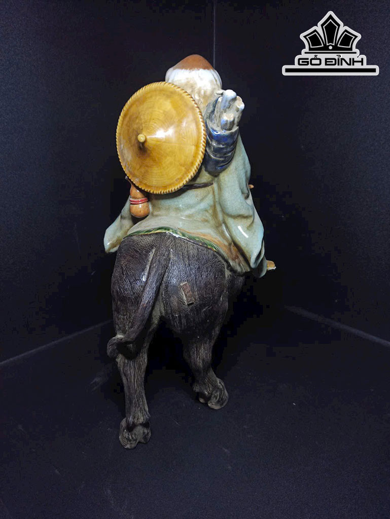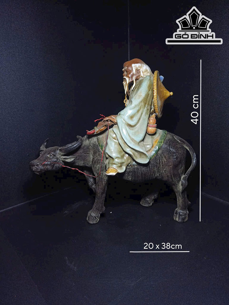 Tượng Lão Tử Cưỡi Trâu Gốm Phật Sơn Cao 40 Ngang 38 Sâu 20 (cm)