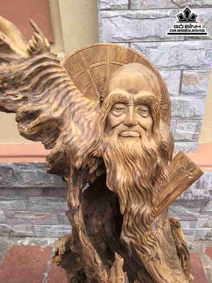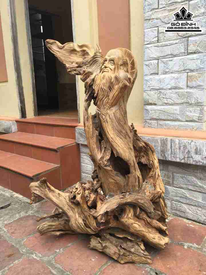 Tượng Lão Tử gỗ lũa bách xanh cao 125 rộng 80 dày 36 (cm)