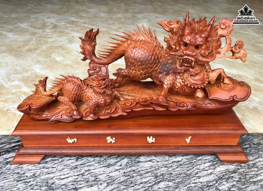 Tượng Long Mã Gỗ Hương Cao 33 Ngang 52 Sâu 16 (cm)