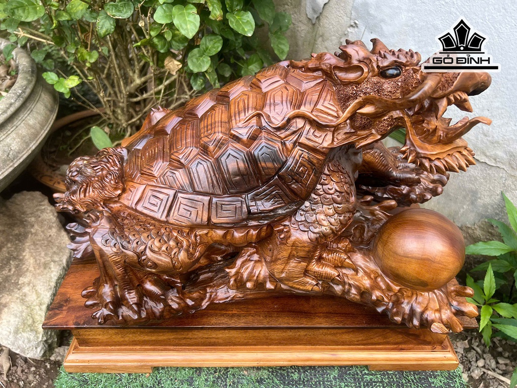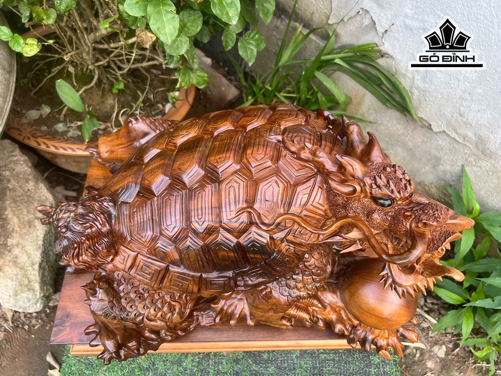Tượng Long Quy Gỗ Bách Xanh Cao 30 Ngang 55 Sâu 33 (cm)