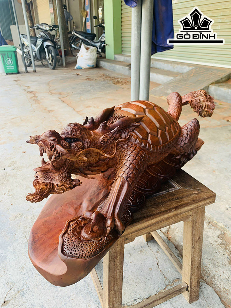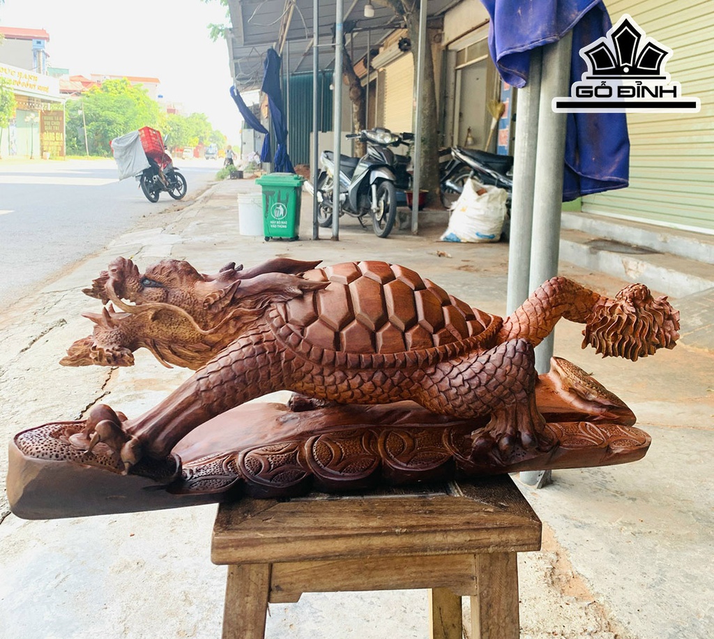Tượng Long Quy Gỗ Hương Cao 23 Ngang 68 Sâu 21 (cm)