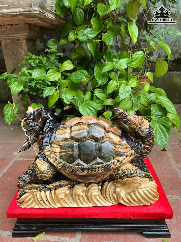Tượng Long Quy Gỗ Mun Hoa Cao 29 Ngang 43 Sâu 25 (cm)