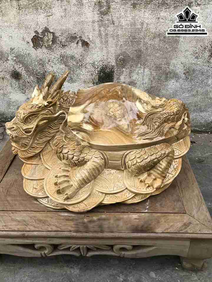 Tượng Long Quy Gỗ Nu Nghiến Cao 20 Ngang 40 Sâu 38 (cm)