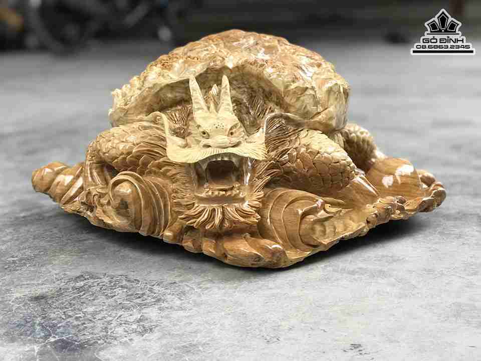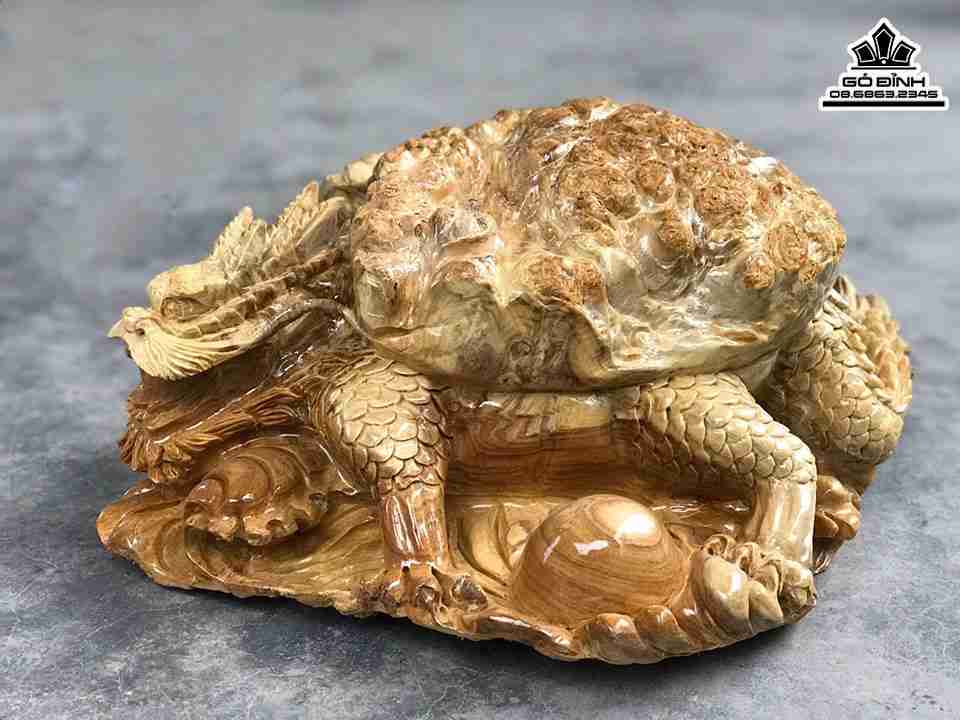 Tượng Long Quy Gỗ Nu Nghiến Cao 20 Ngang 40 Sâu 36 (cm)