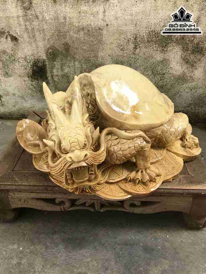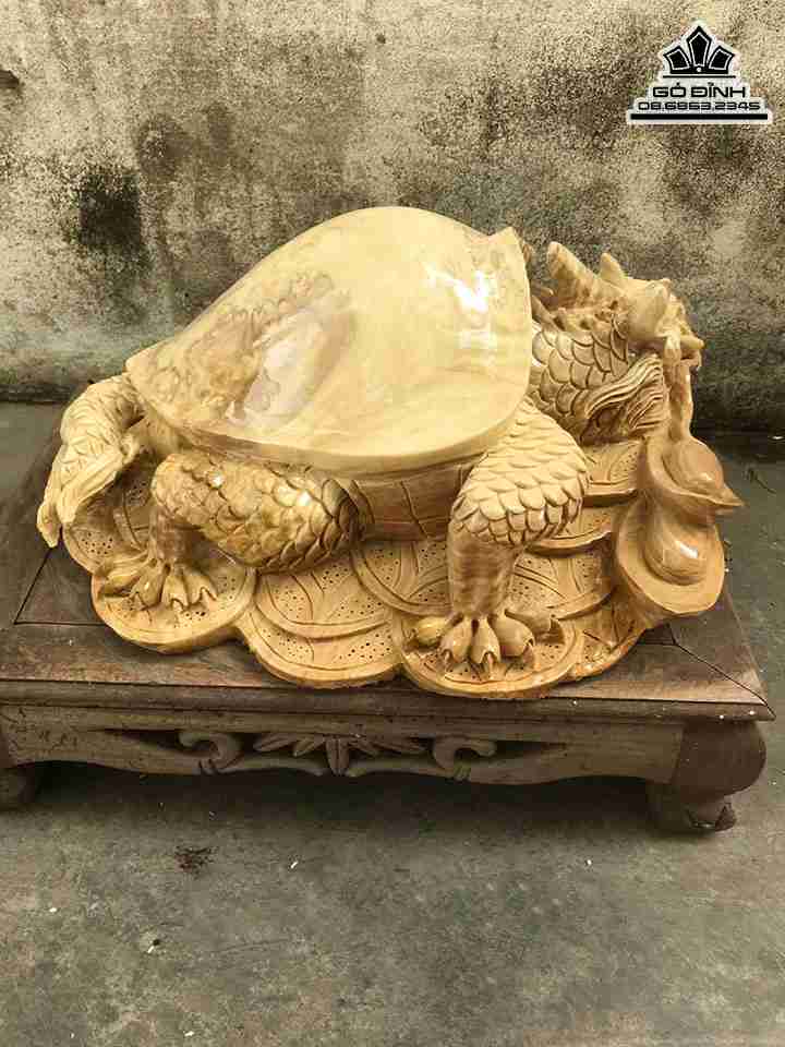Tượng Long Quy Gỗ Nu Nghiến Cao 21 Ngang 42 Sâu 39 (cm)
