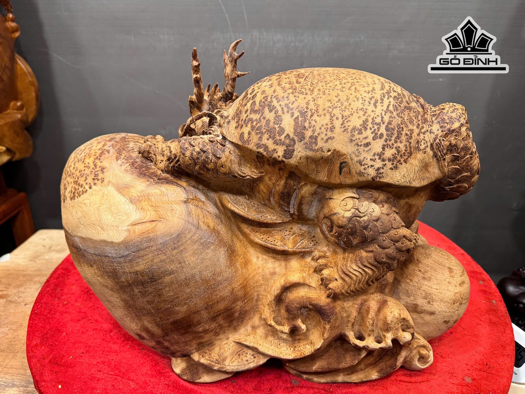 Tượng Long Quy Gỗ Nu Ngọc Am Cao 30 Ngang 42 Sâu 22 (cm) 9kg