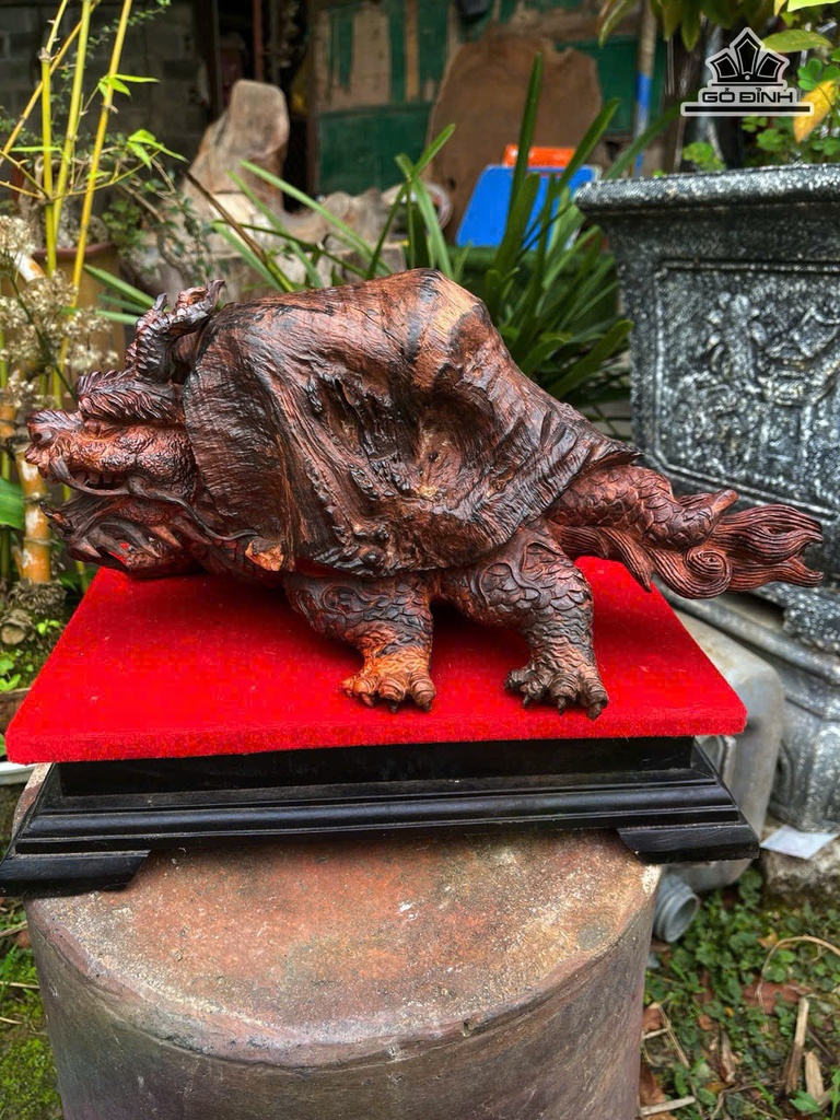 Tượng Long Quy Gỗ Nu Trắc Cao 18 Ngang 39 Sâu 23 (cm)