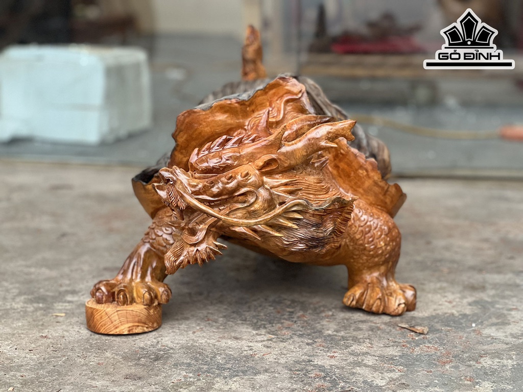 Tượng Long Quy Gỗ Pơ Mu Cao 38 Ngang 73 Sâu 33 (cm)