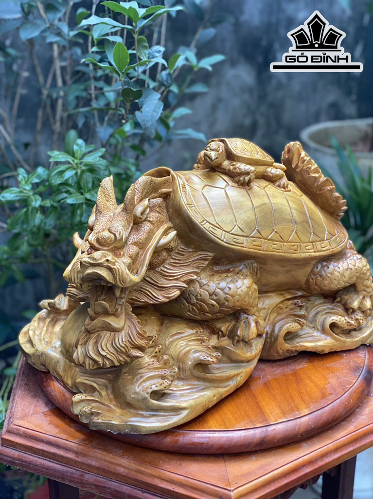 Tượng Long Quy Gỗ Xá Xị Cao 27 Ngang 50 Sâu 36 (cm)